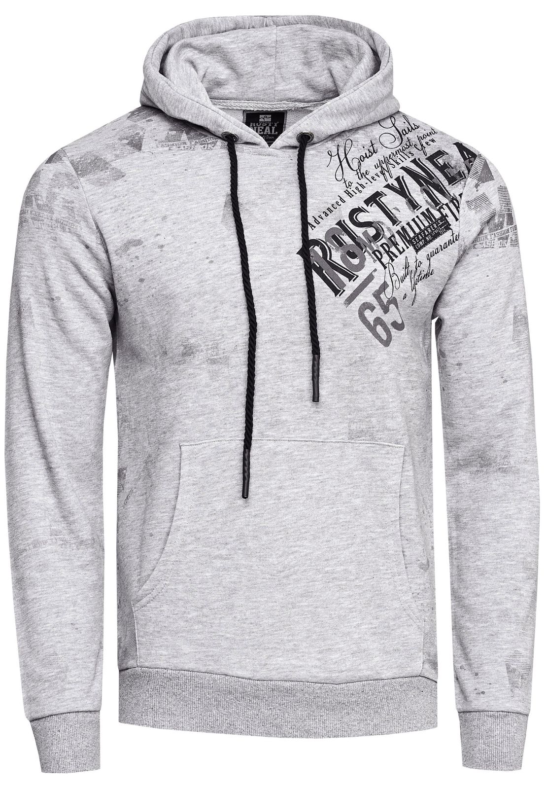 Sweat à capuche élégant pour homme, imprimé graphique intégral, poche kangourou, référence 19134, gris