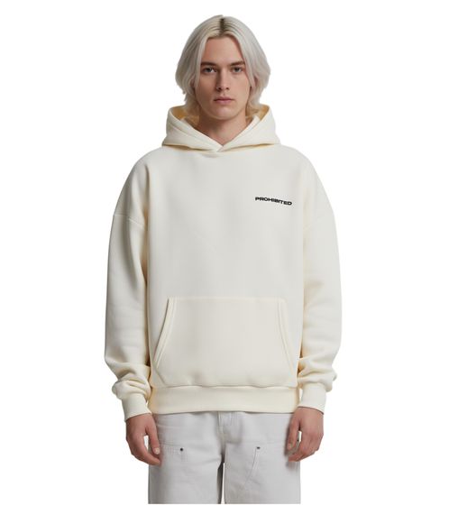 Sweat à capuche Prohibited pour homme avec logo, 100 % coton, coloris crème/blanc