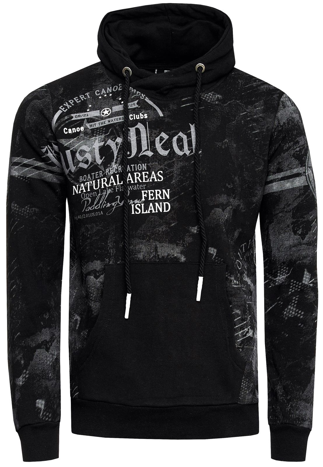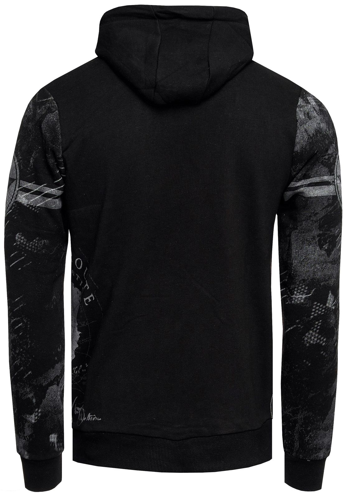 Sweat à capuche sportif pour homme, noir, imprimé vintage et poche kangourou, 19135
