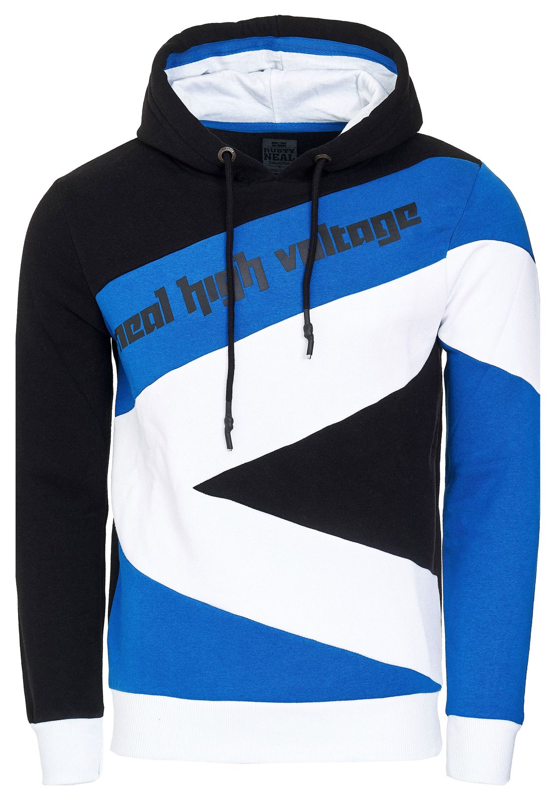 Sweat à capuche sportif pour homme, style color-block, modèle 4727 Noir/Bleu roi/Blanc