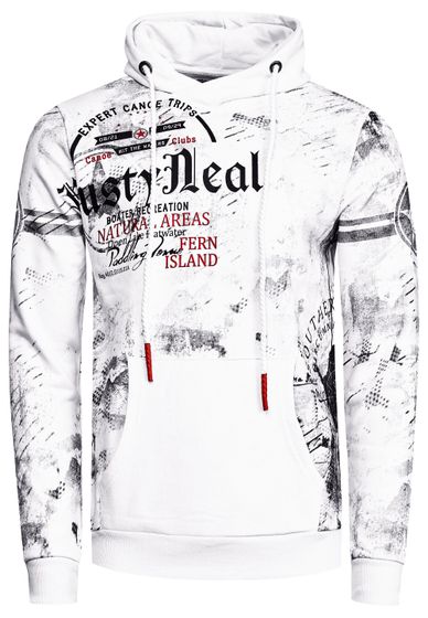 Sweat-shirt à capuche sportif pour homme, blanc, imprimé vintage et poche kangourou, 19135