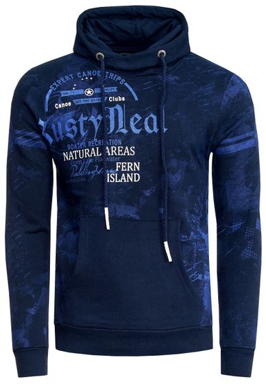 Sweat-shirt à capuche sportif pour homme, bleu marine, orné d'imprimés vintage et d'une poche kangourou, référence 19135