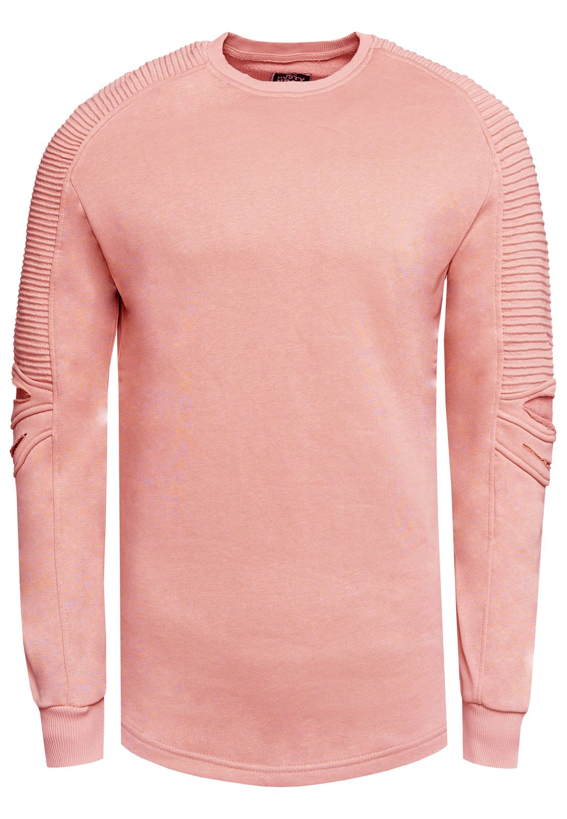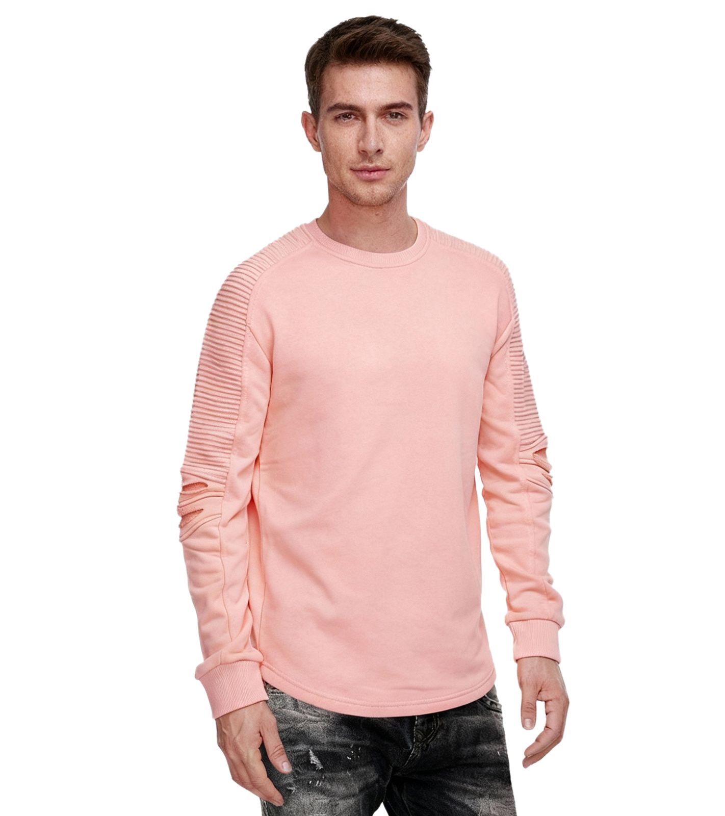 Sweat-shirt urbain pour homme à manches côtelées, pull 19056, disponible en rose, gris ou vert