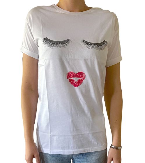 T-shirt femme COURSE avec imprimé « baiser bouche » - Chemise d'été en coton - Chemise de loisirs - 900069 - Blanc