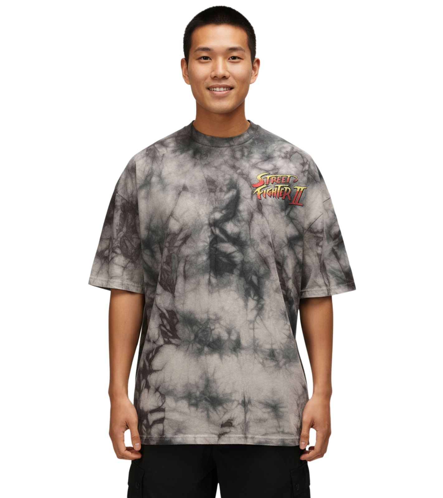 T-shirt homme RE:COVERED X CAPCOM avec imprimé Street Fighter Blanka, en coton, col rond, gris, MMDIF1880