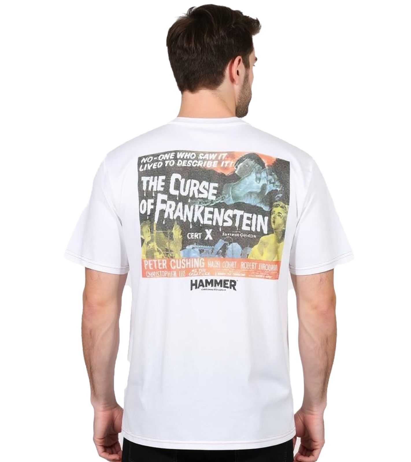 T-shirt homme RE:COVERED X HAMMER Horror, La Malédiction de Frankenstein, en coton, grand imprimé dans le dos, col rond, RCSTC1, blanc ou noir