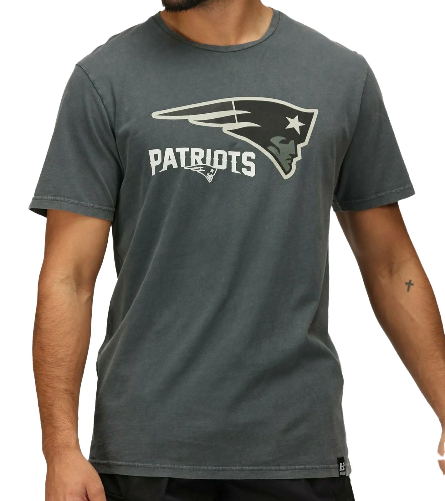 T-shirt homme RE:COVERED X NFL New England Patriots avec imprimés variés, en coton, blanc, bleu, gris, multicolore