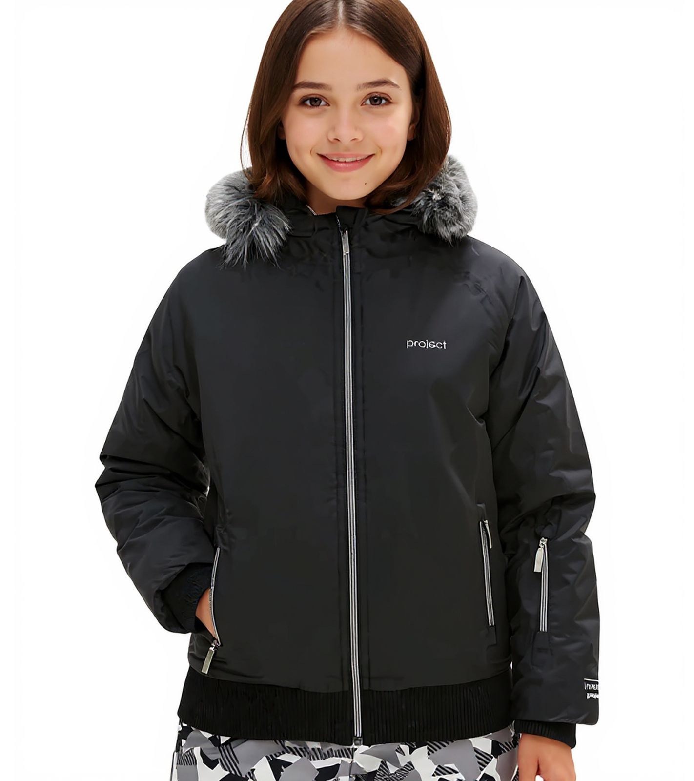 Veste d'hiver pour fille, veste de ski durable, veste d'extérieur avec capuche et fourrure amovible, veste de neige 938001 Noir