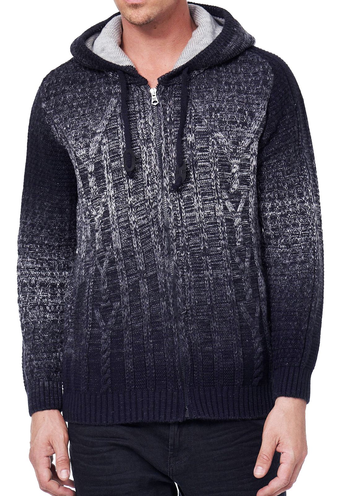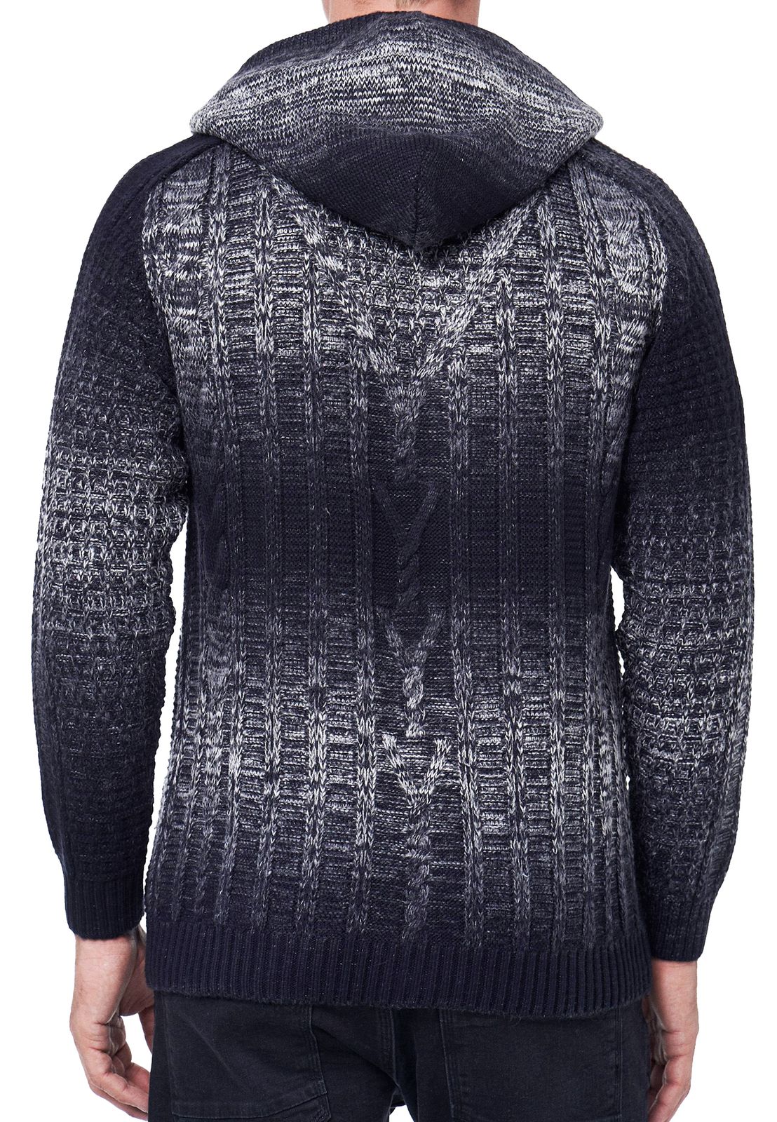 Veste en maille décontractée pour homme avec capuche et cardigan à capuche texturé dégradé 13390 marine