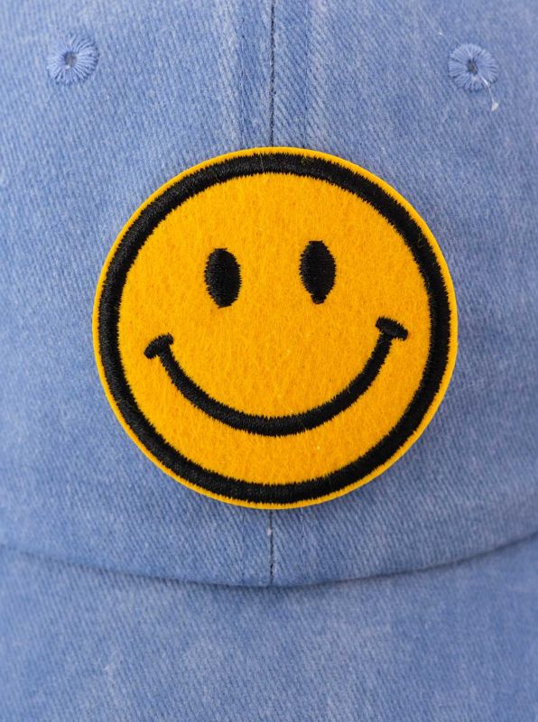 freche ZWILLINGSHERZ Smiley Classic Base-Cap mit Smiley-Patch Baumwoll-Cap justierbare Cappy Schirm-Mütze 4603M K258209 Hellblau