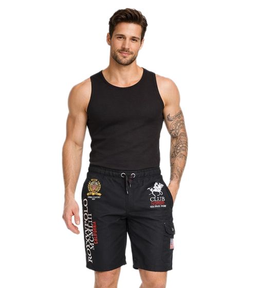 GEOGRAPHICAL NORWAY Quoyal Herren Schwimm-Hose mit Print und Farbakzenten Badehose stylische Schwimm-Shorts 001 Schwarz