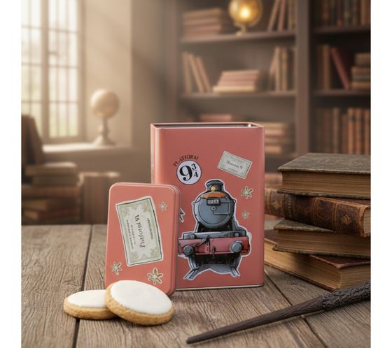 Stilvolle Harry Potter Vorratsdose im Hogwarts Express Design – ideal zur Aufbewahrung von Snacks, Süßigkeiten oder kleinen Schätzen.