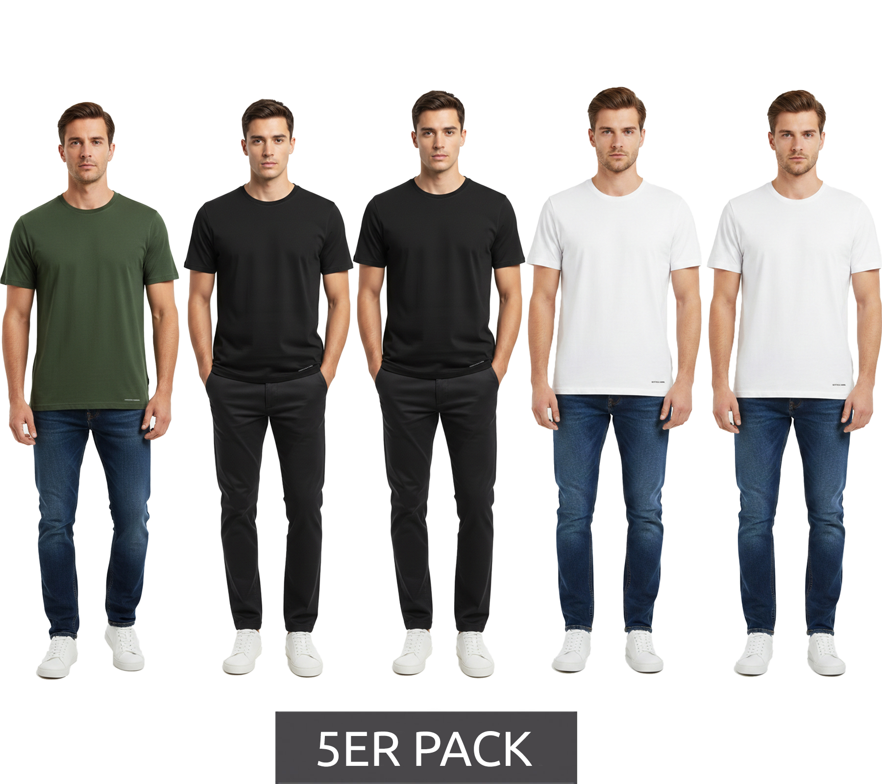 Hochwertiges 10er Sparpack SCOTCH & SODA Crew Neck Herren T-Shirt Basic-Shirt Unterziehshirt Baumwoll-Shirt SSFA25M2312806 in Weiß oder Schwarz/Weiß/Grün