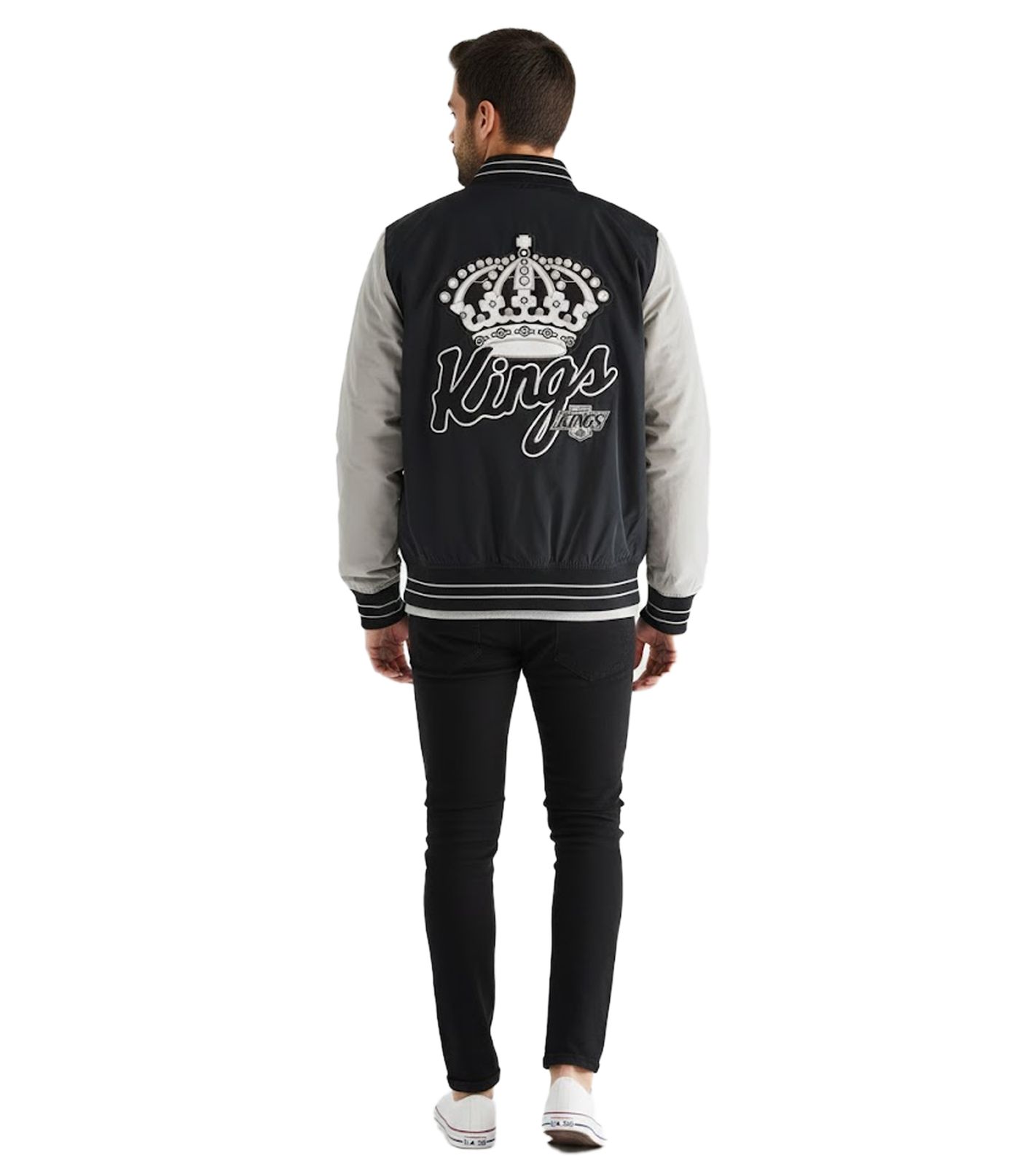 Hollister X NHL Los Angeles Kings Herren College-Jacke mit Logo-Stickerei Bomber-Jacke Herbst-Jacke 332-320-0024-910 Schwarz/Grau