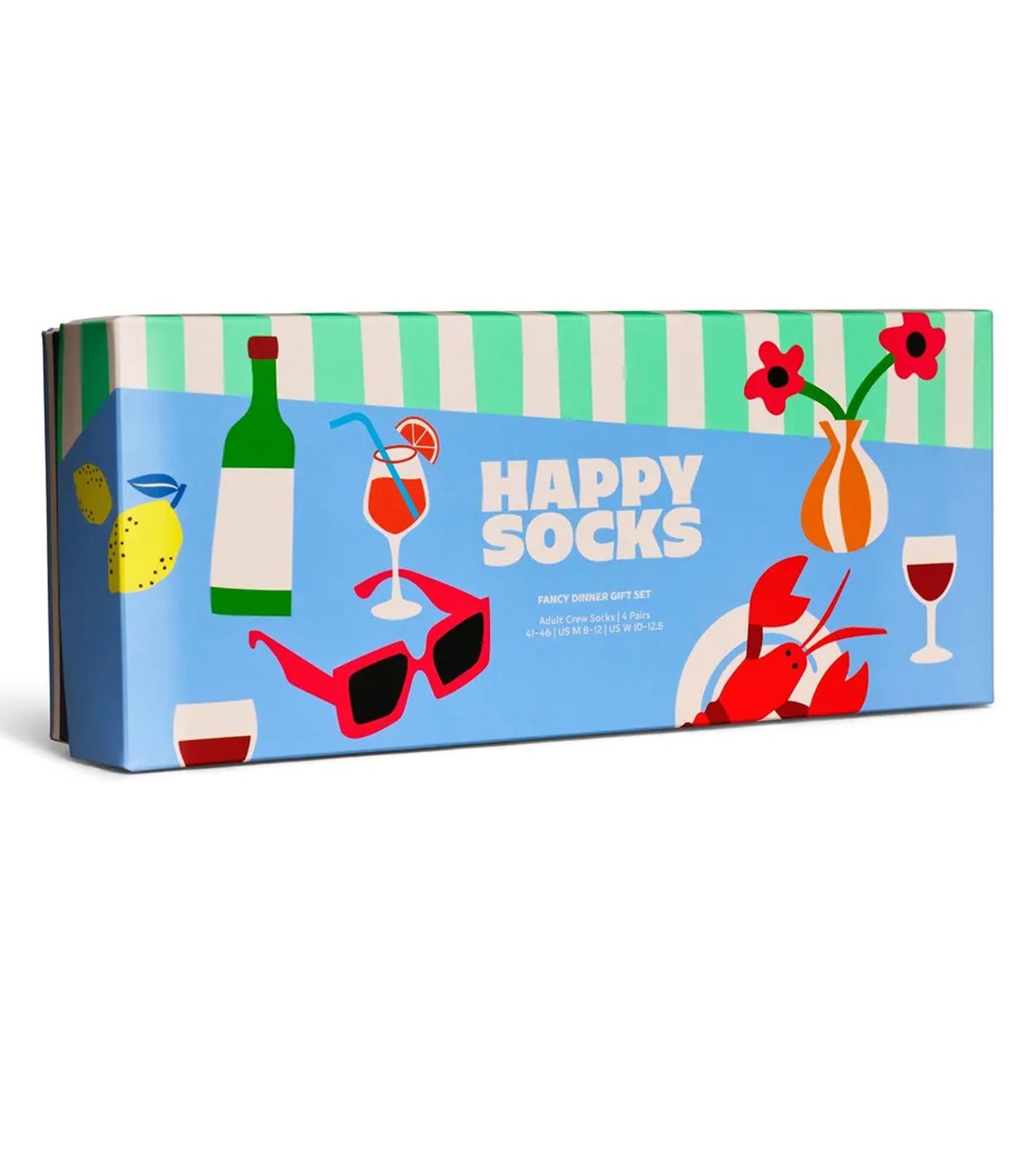 4 paia di calzini Happy Socks Fancy Dinner in cotone con motivi di cibo e bevande, calzini per tutti i giorni in confezione regalo P002659, multicolore