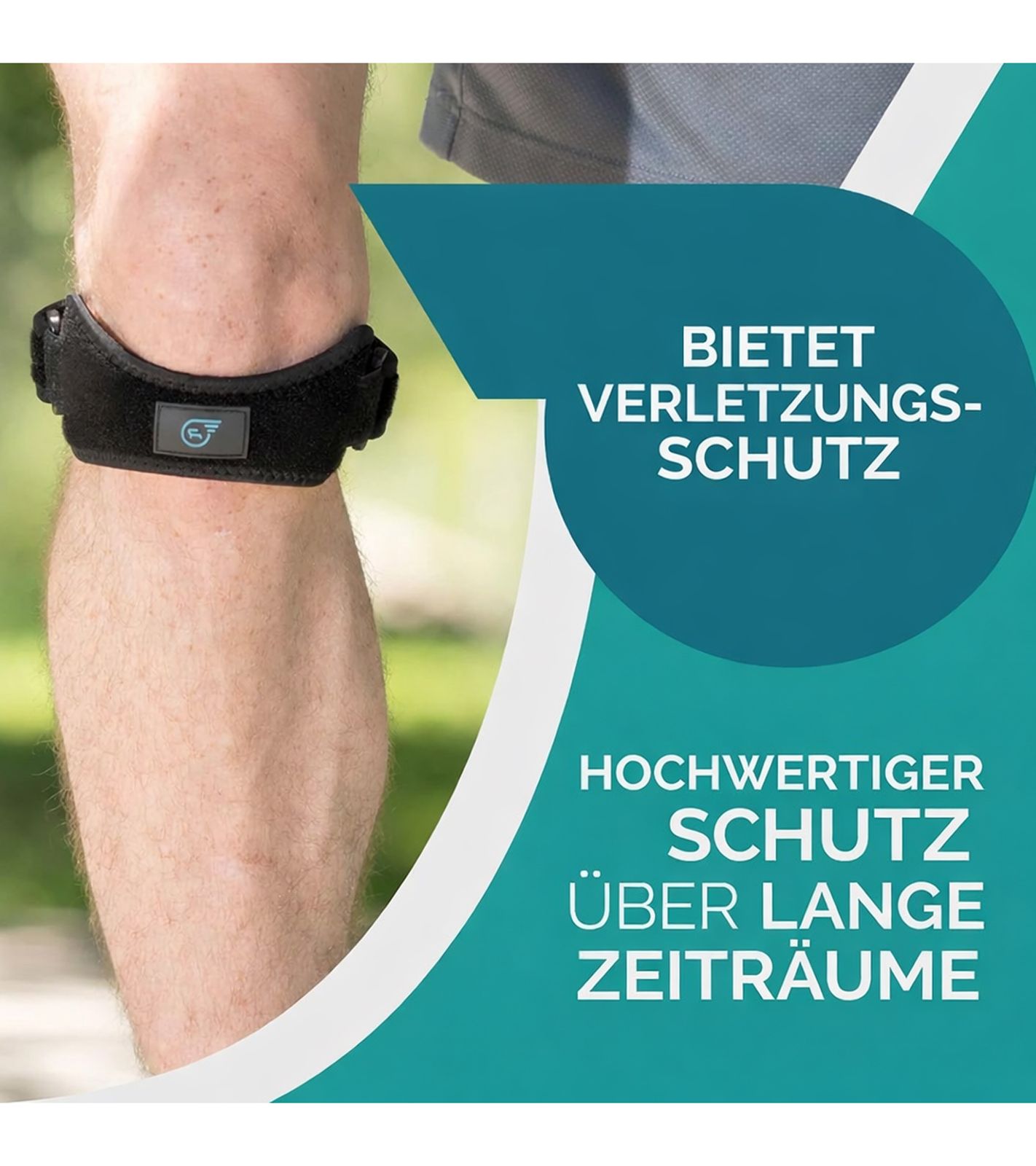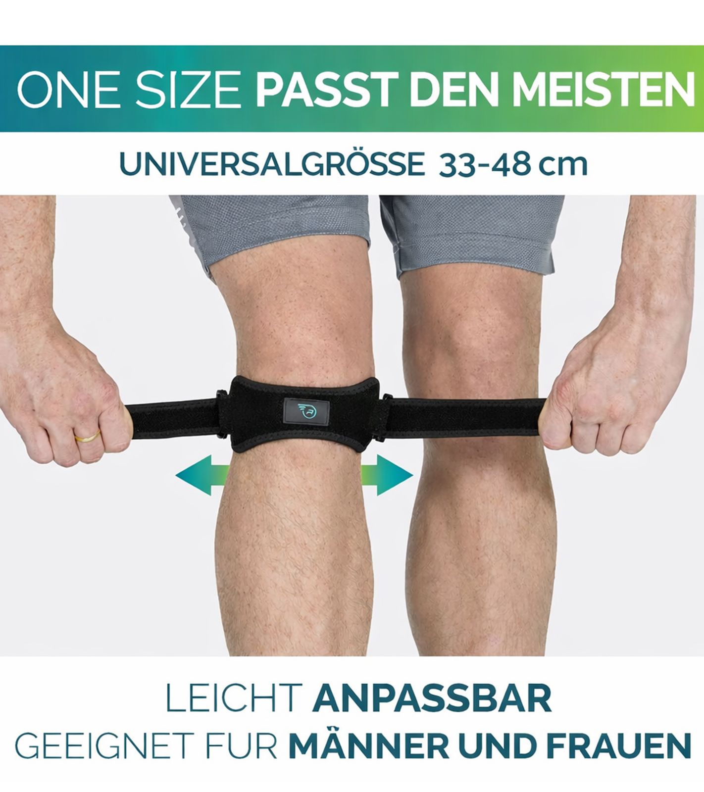 Questa ginocchiera ti permette di allenarti senza provare dolore. Si posiziona intorno al ginocchio, direttamente sotto la rotula e sopra il tendine rotuleo, per sostenerlo.