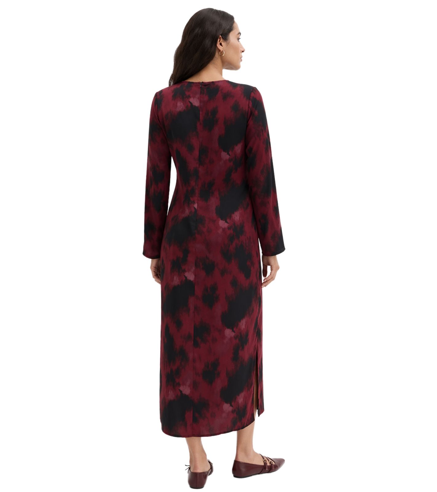 Abito midi da donna in raso con stampa astratta, abito da sera 927049 Rosso/Nero