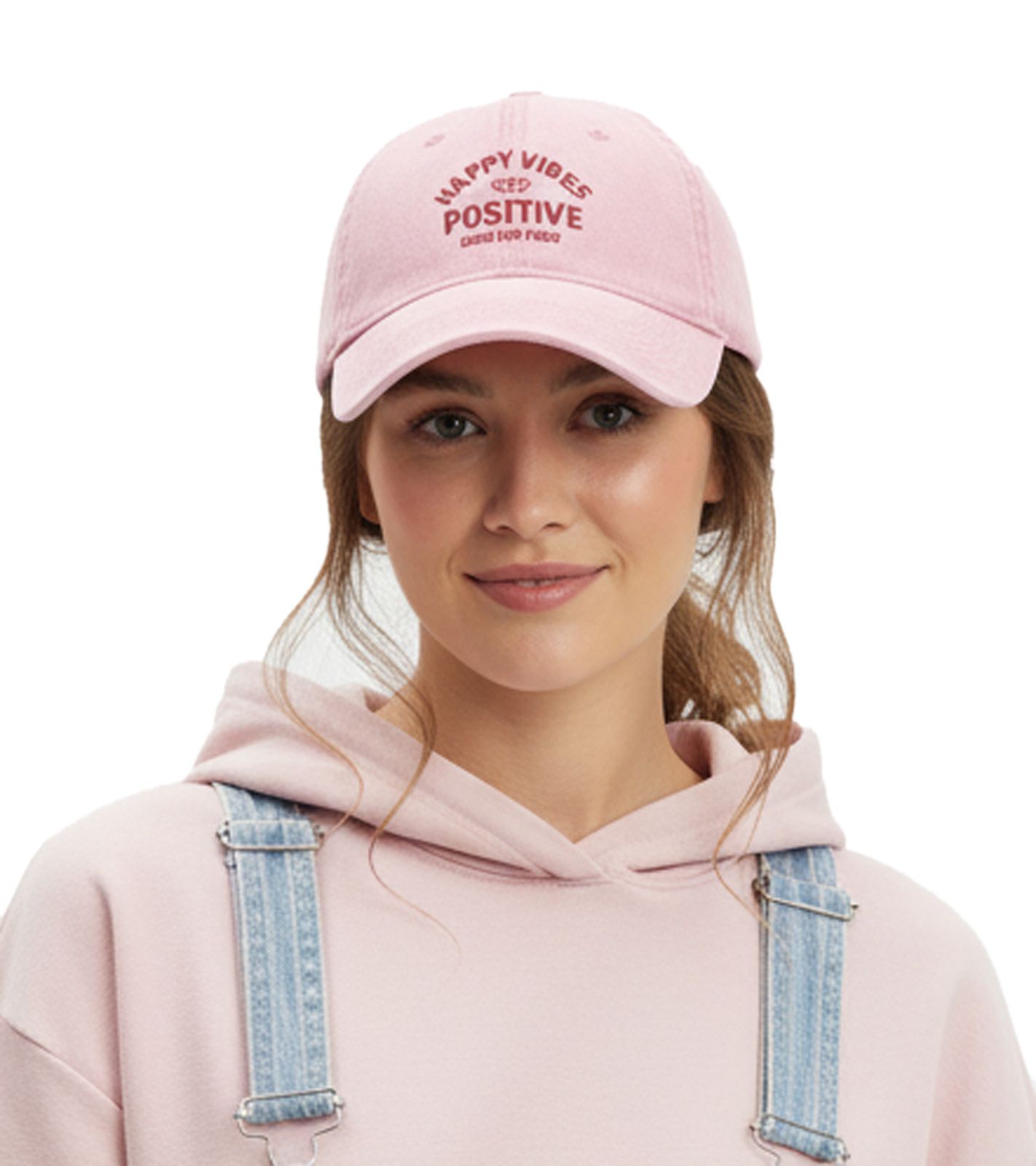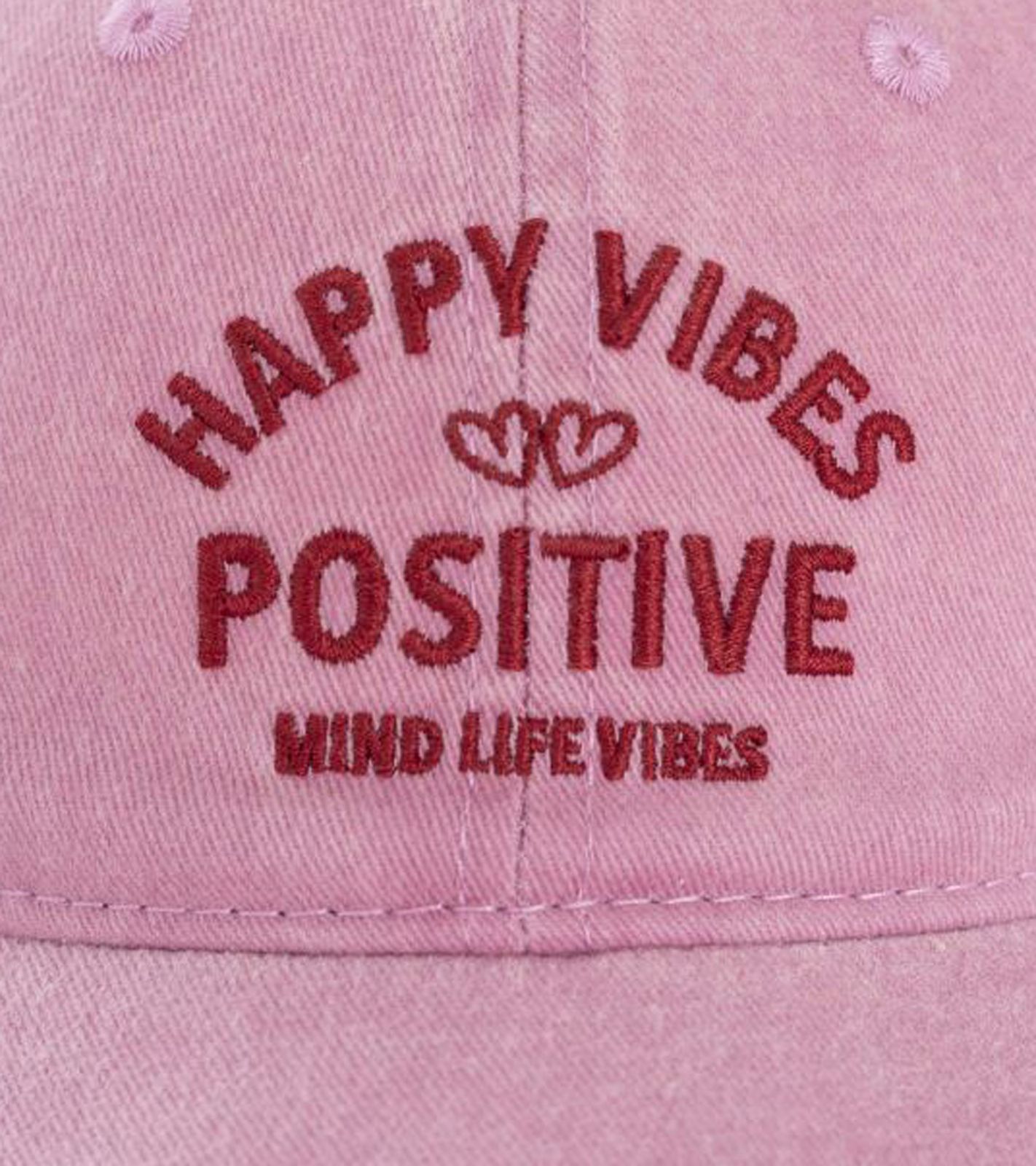 Allegro cappellino da baseball classico ZWILLINGSHERZ Happy Vibes con scritta Positive Vibes, in cotone, con visiera regolabile, 4603M K5403-2 Rosa antico