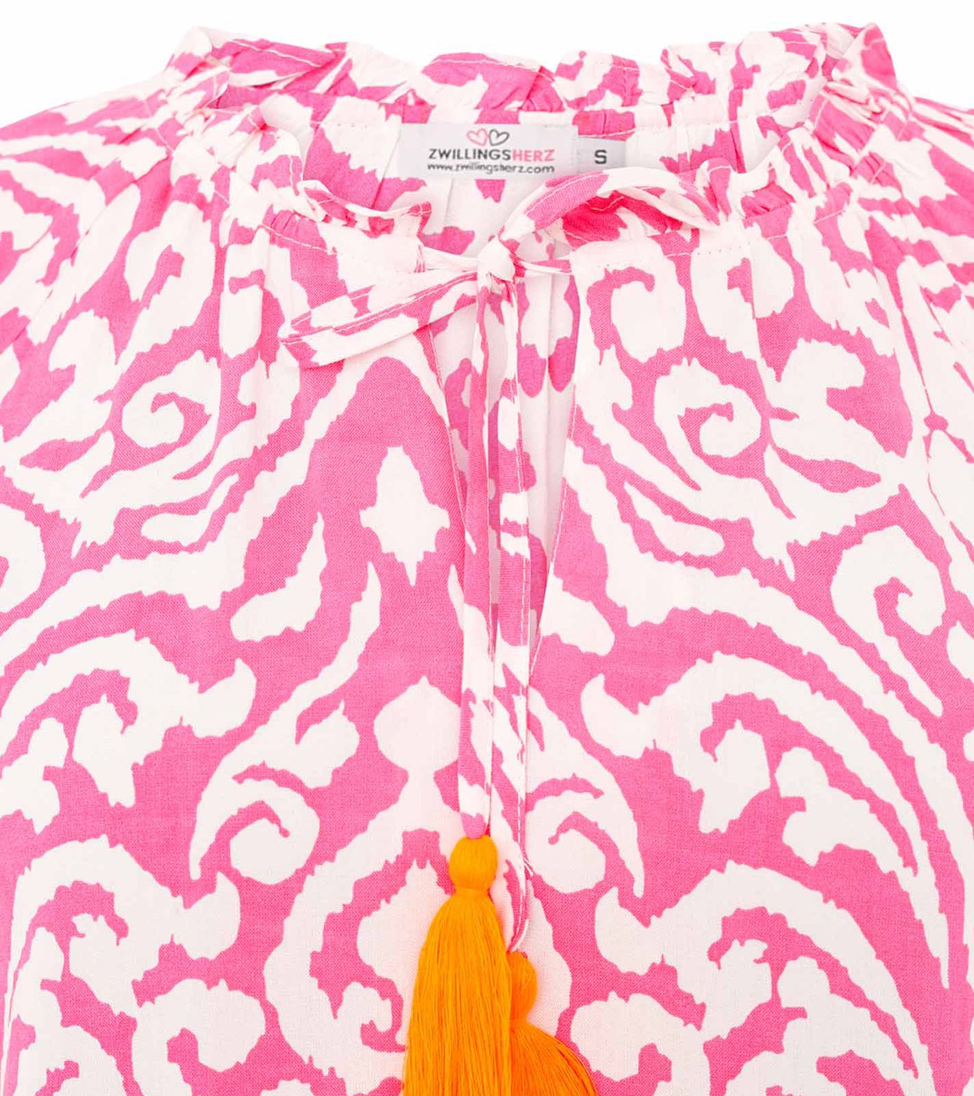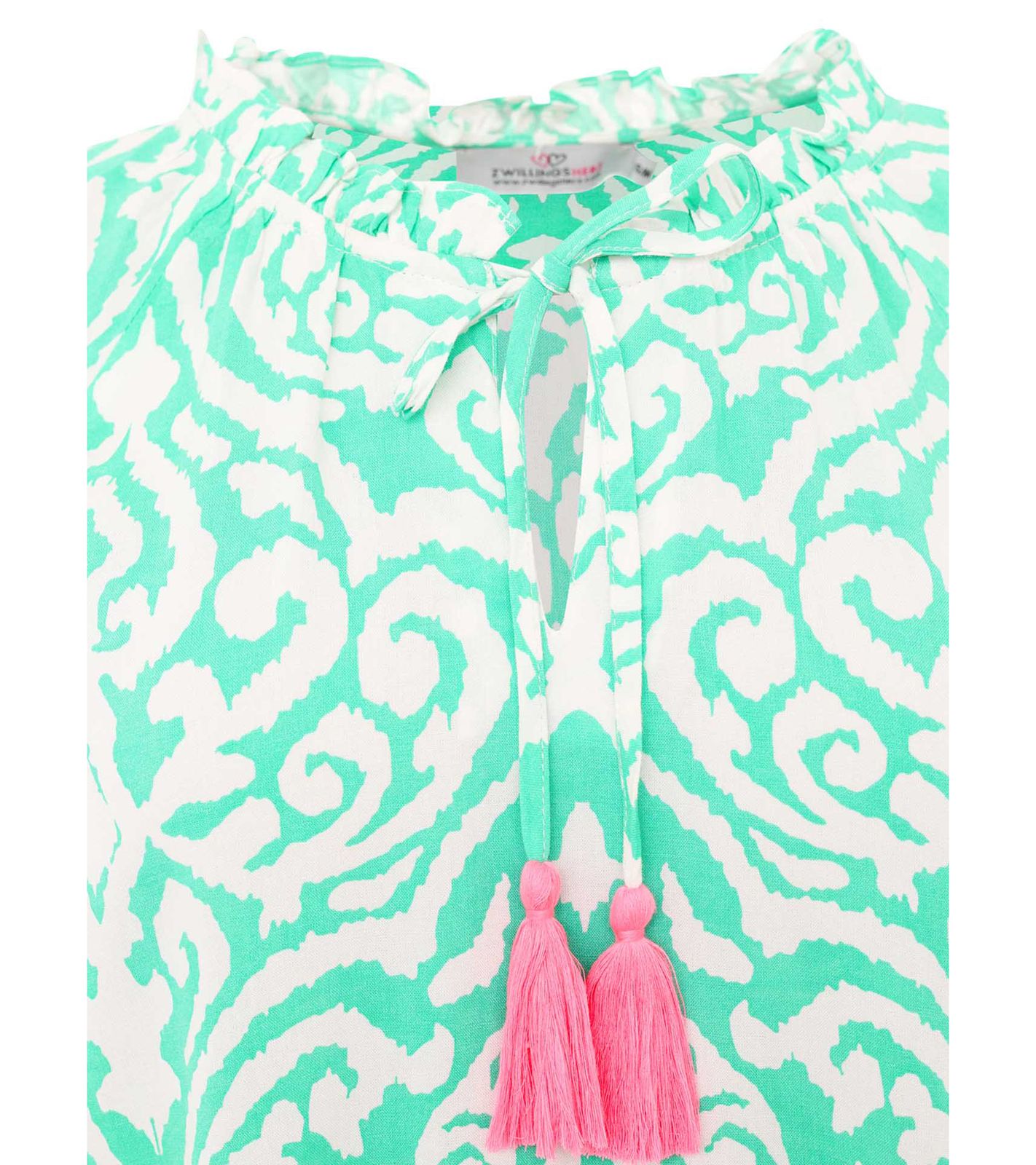 Blusa estiva da donna ZWILLINGSHERZ Ornaments, tunica con nappe 33223, disponibile in rosa, verde o blu