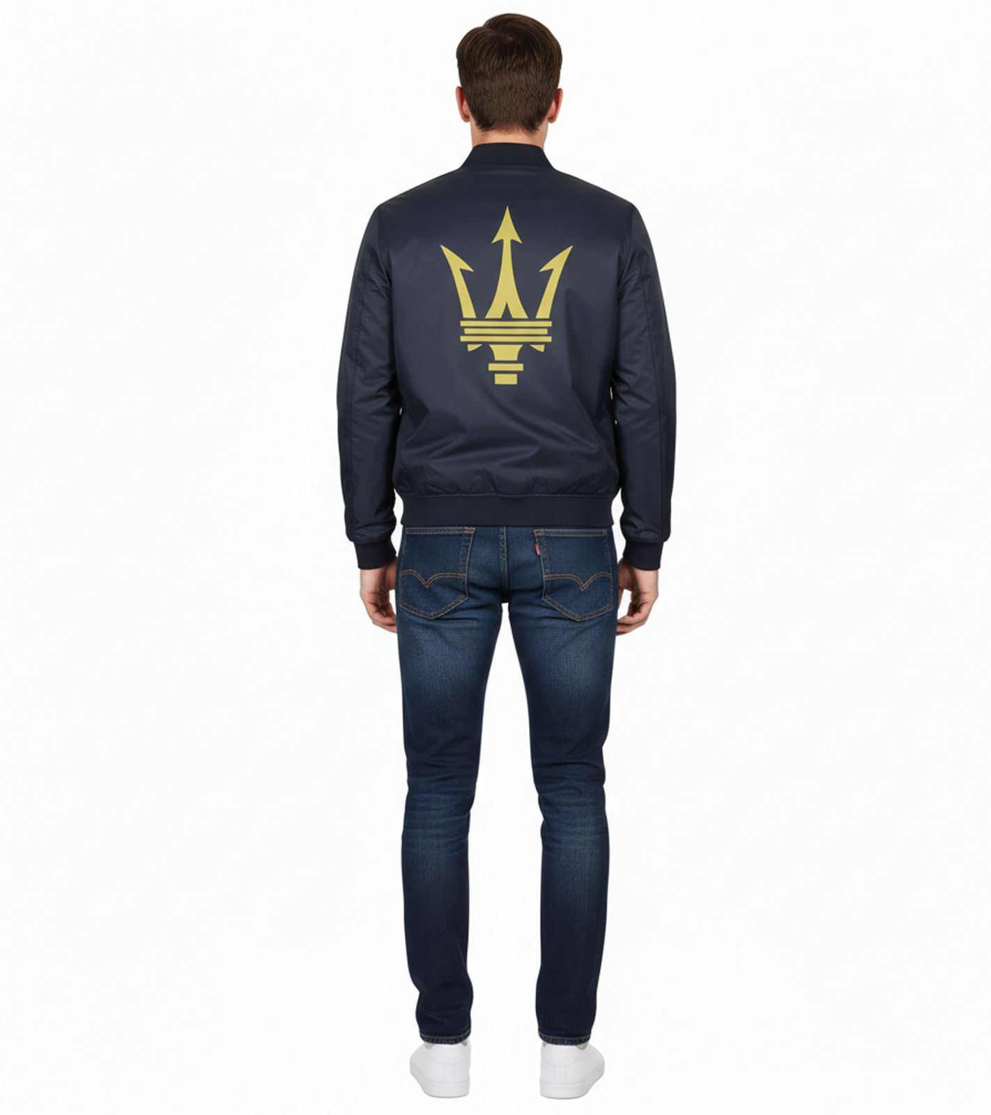 Bomber da uomo Maserati con stampa Maxi Tridente, Giacca autunnale Motorsport, Blu scuro