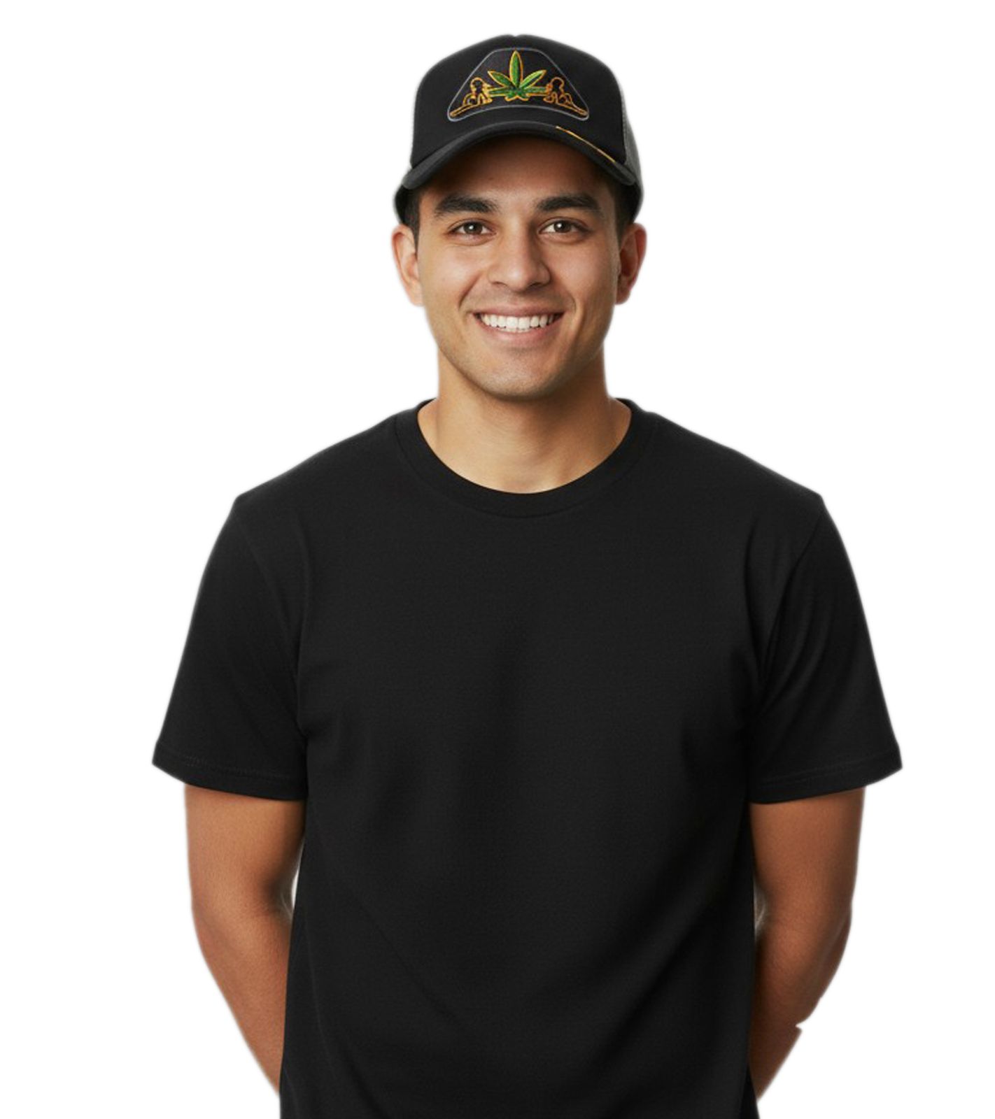 Cappellino da camionista Dope Orange On Black & Leaf, elegante cappellino da baseball, in cotone con inserto in rete, 7330GUY, Nero/Grigio