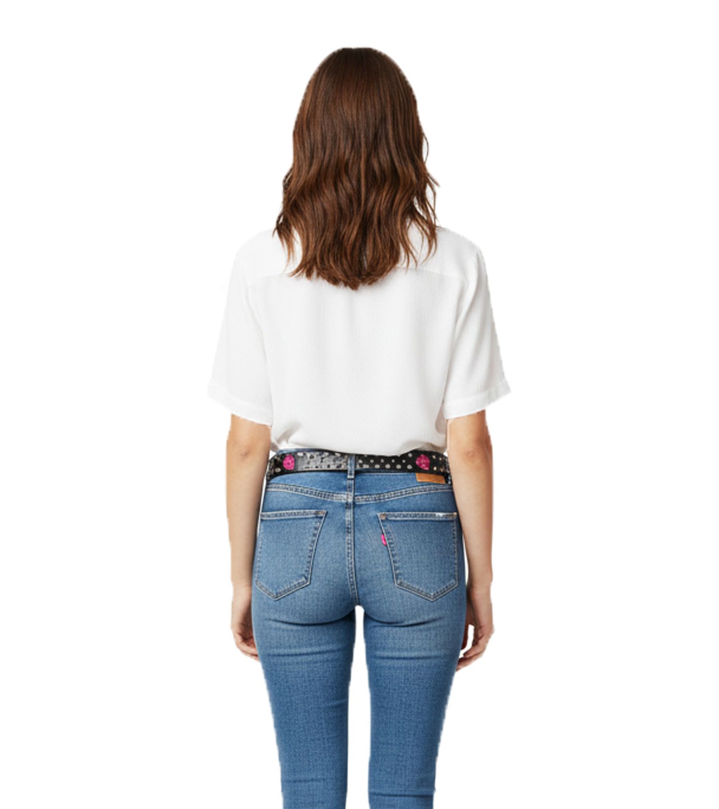 Cintura in pelle con grafica a granate dei Green Day, stile punk rock, nera casual