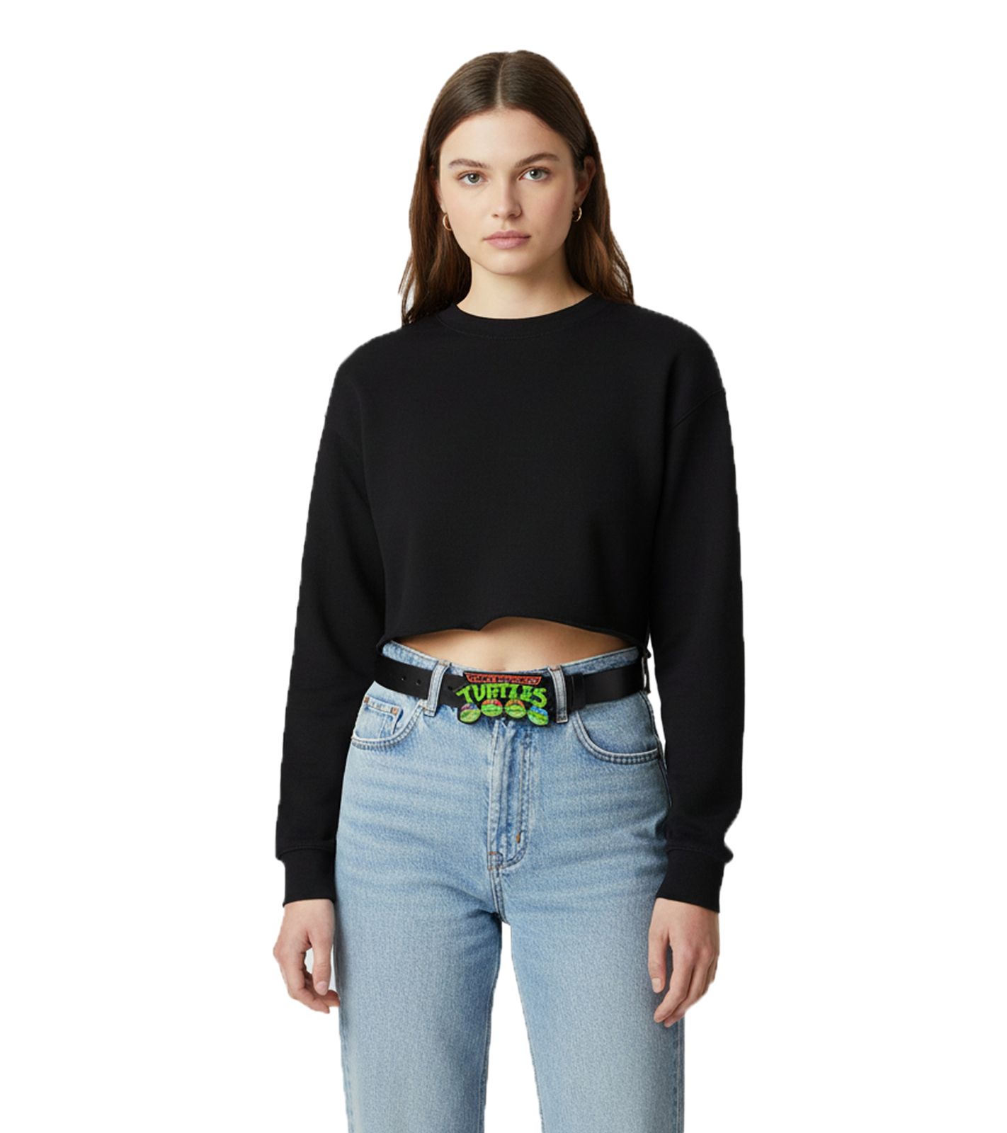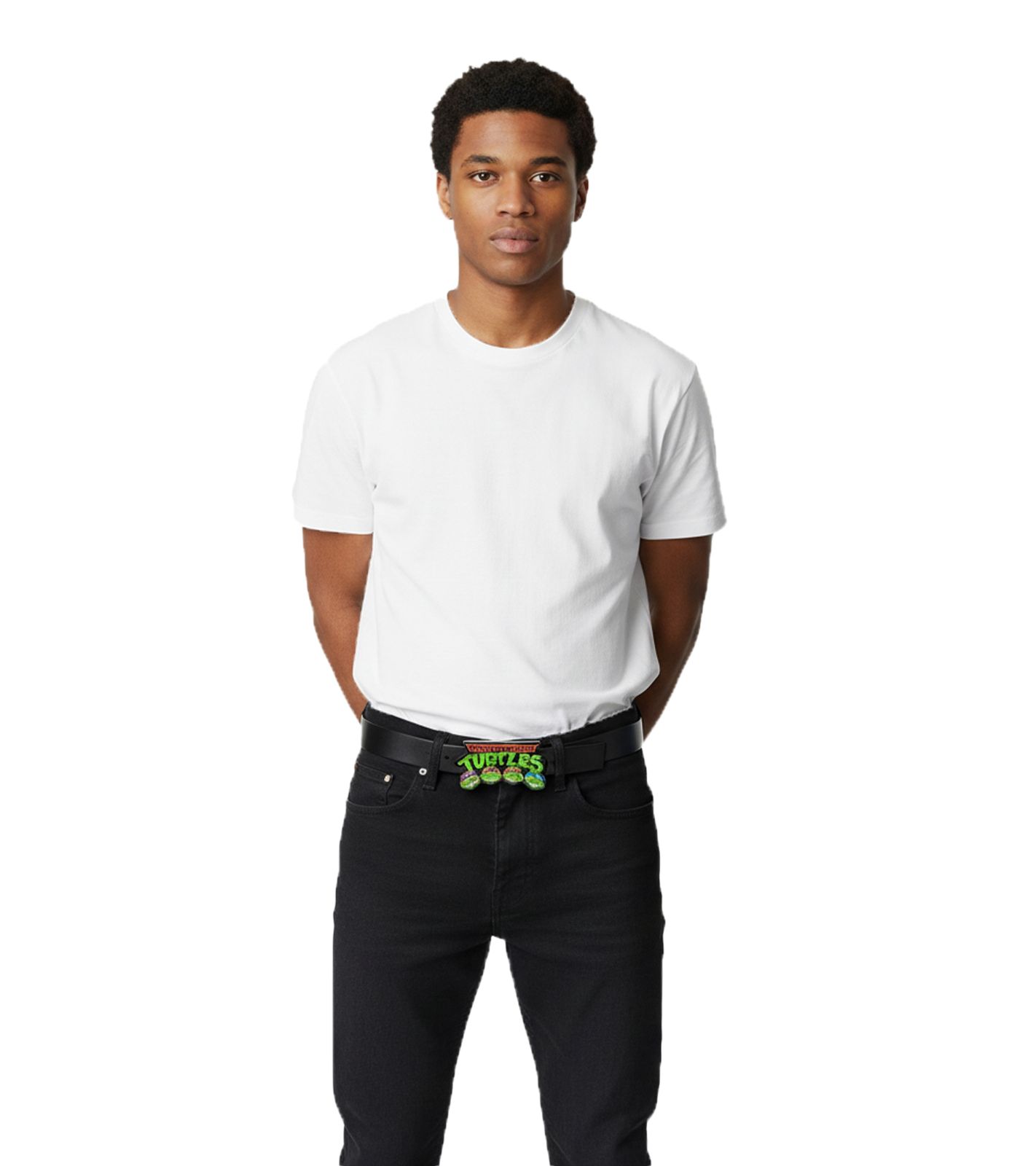 Cintura Ninja Turtles da donna o da uomo, in pelle con fibbia con logo, casual, 126,5 cm, BT160648TMT, nera
