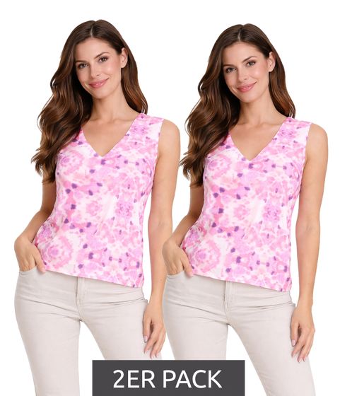 Confezione da 2 pezzi SOLO ONLALMA top estivo da donna in look batik, maglietta senza maniche per il tempo libero con scollo profondo 92042750 rosa/viola/bianco