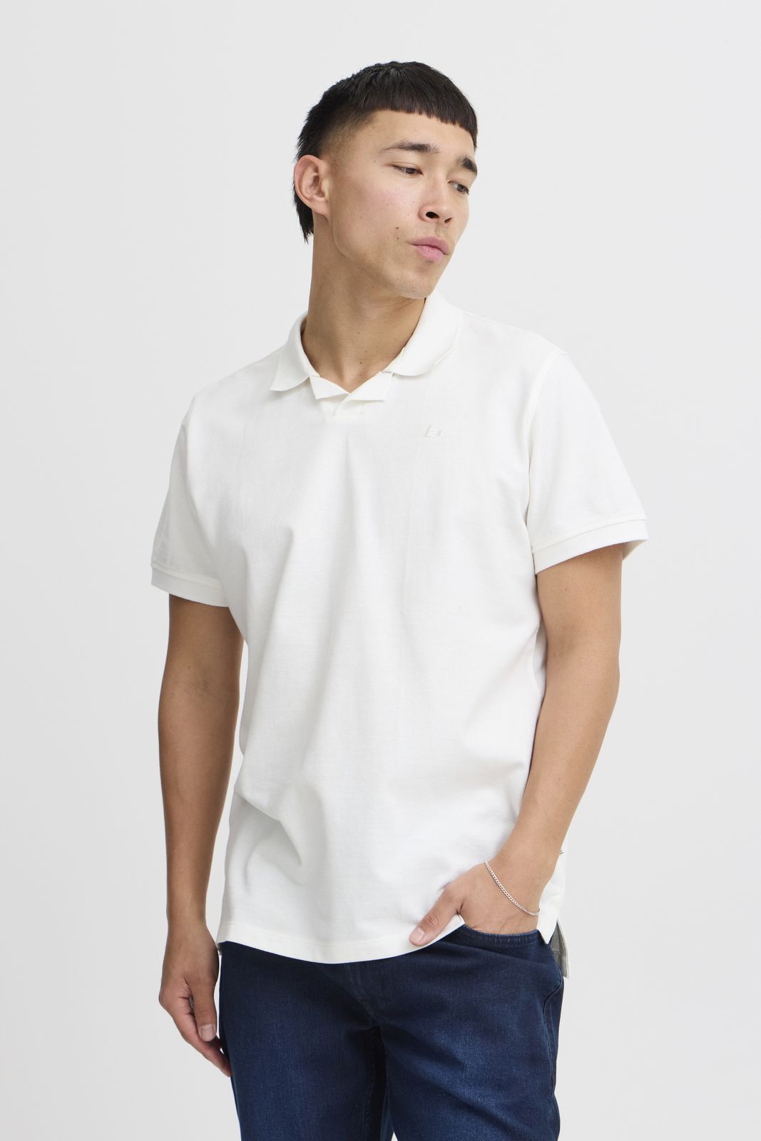 Confezione da 2 polo da uomo BLEND in cotone, modello classico 20718074-204240, bianco/blu