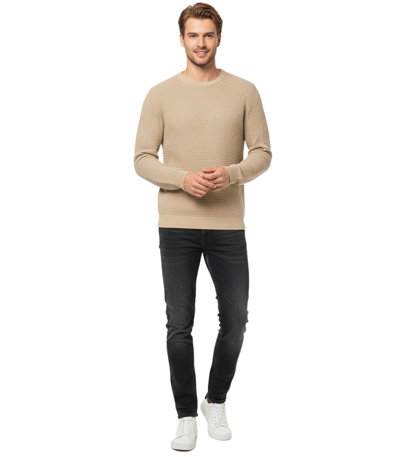 Confezione da 3 maglioni da uomo JACK & JONES JJEATLAS in maglia con design strutturato, girocollo in cotone, 12212816 Beige o Blu Scuro
