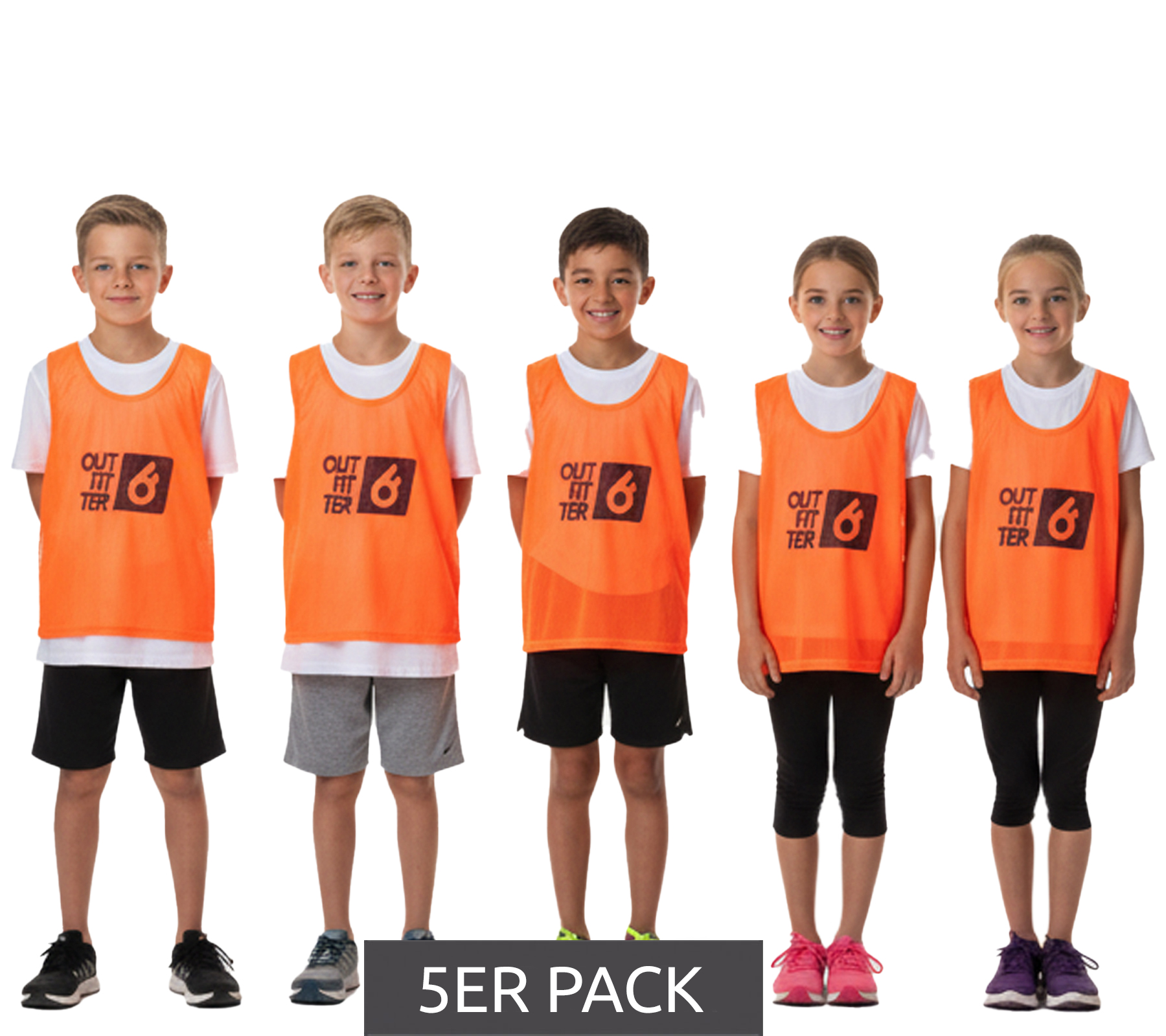 Confezione da 5 Outfitter OCEAN FABRICS TAHI gilet da allenamento sostenibile per bambini, sport di squadra OUT-K-3038-OTW-28 Neon-Orange
