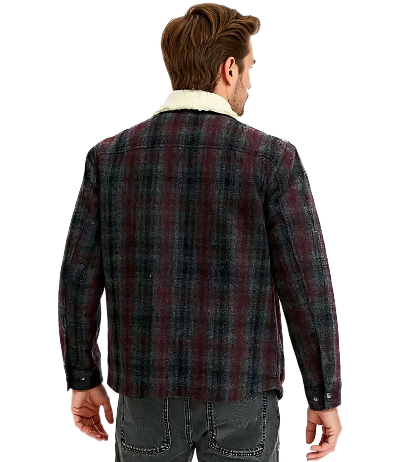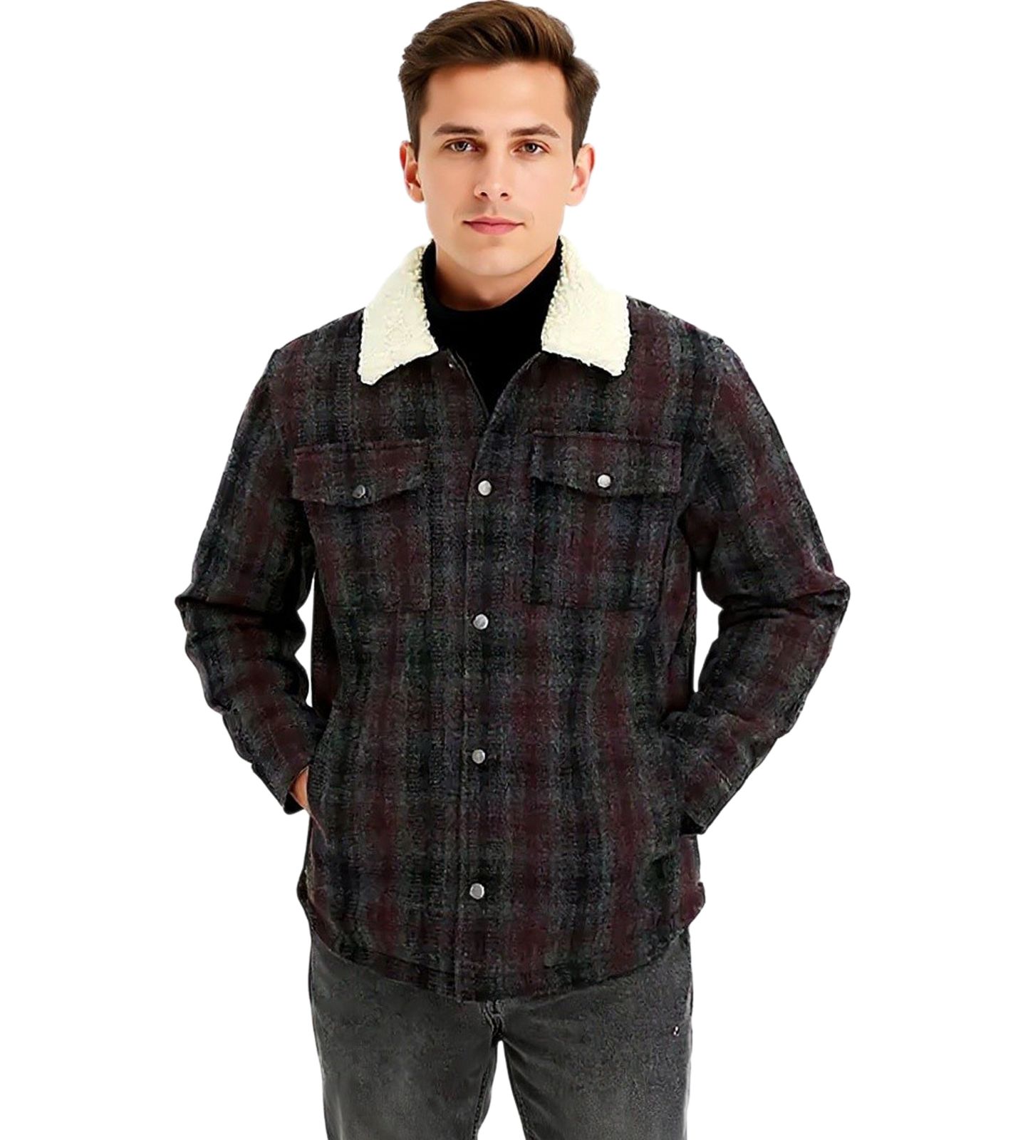 Confezione risparmio da 2 giacche-camicia a quadri in pelliccia sintetica da uomo, elegante camicia a maniche lunghe, 957592 Nero/Grigio/Rosso