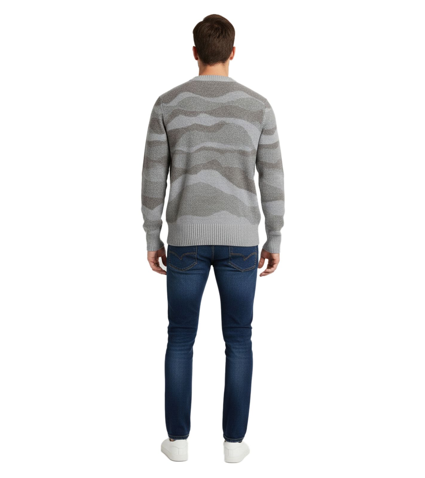 Elegante maglione da uomo ESPRIT in maglia con motivo a onde, girocollo, in cotone, grigio o blu