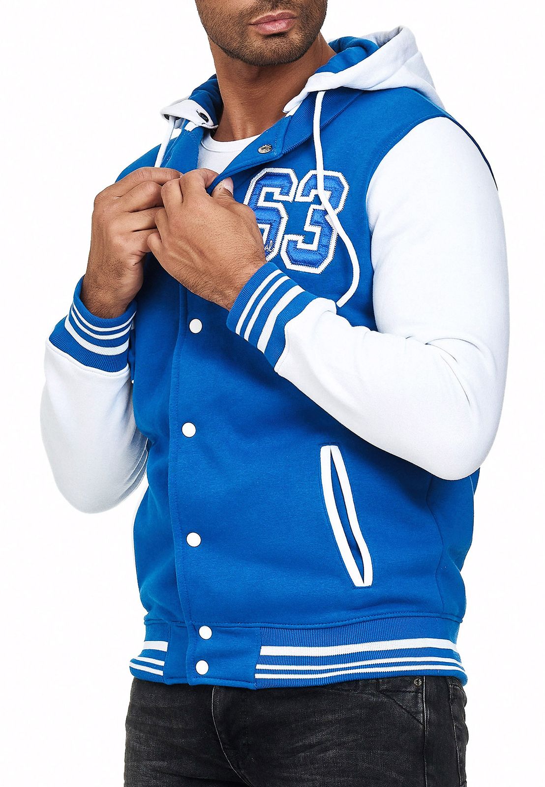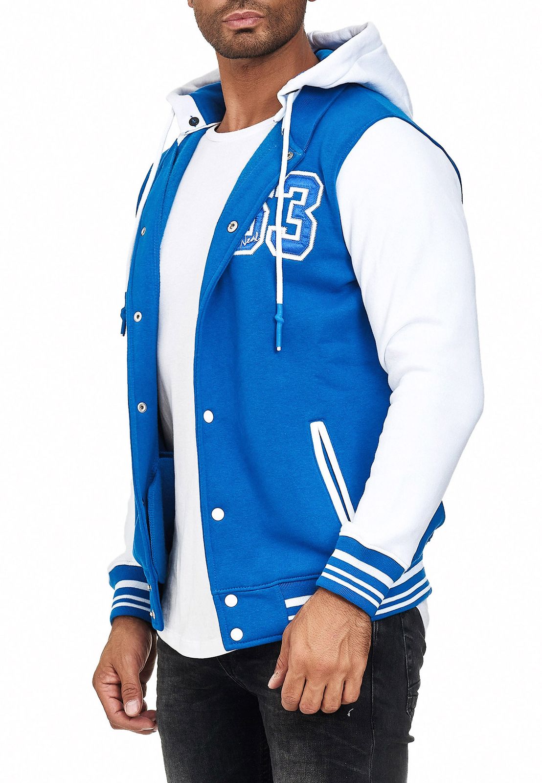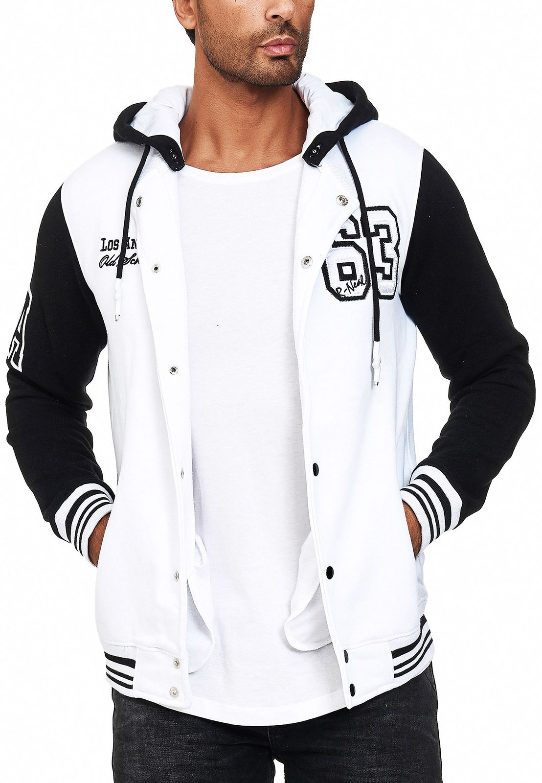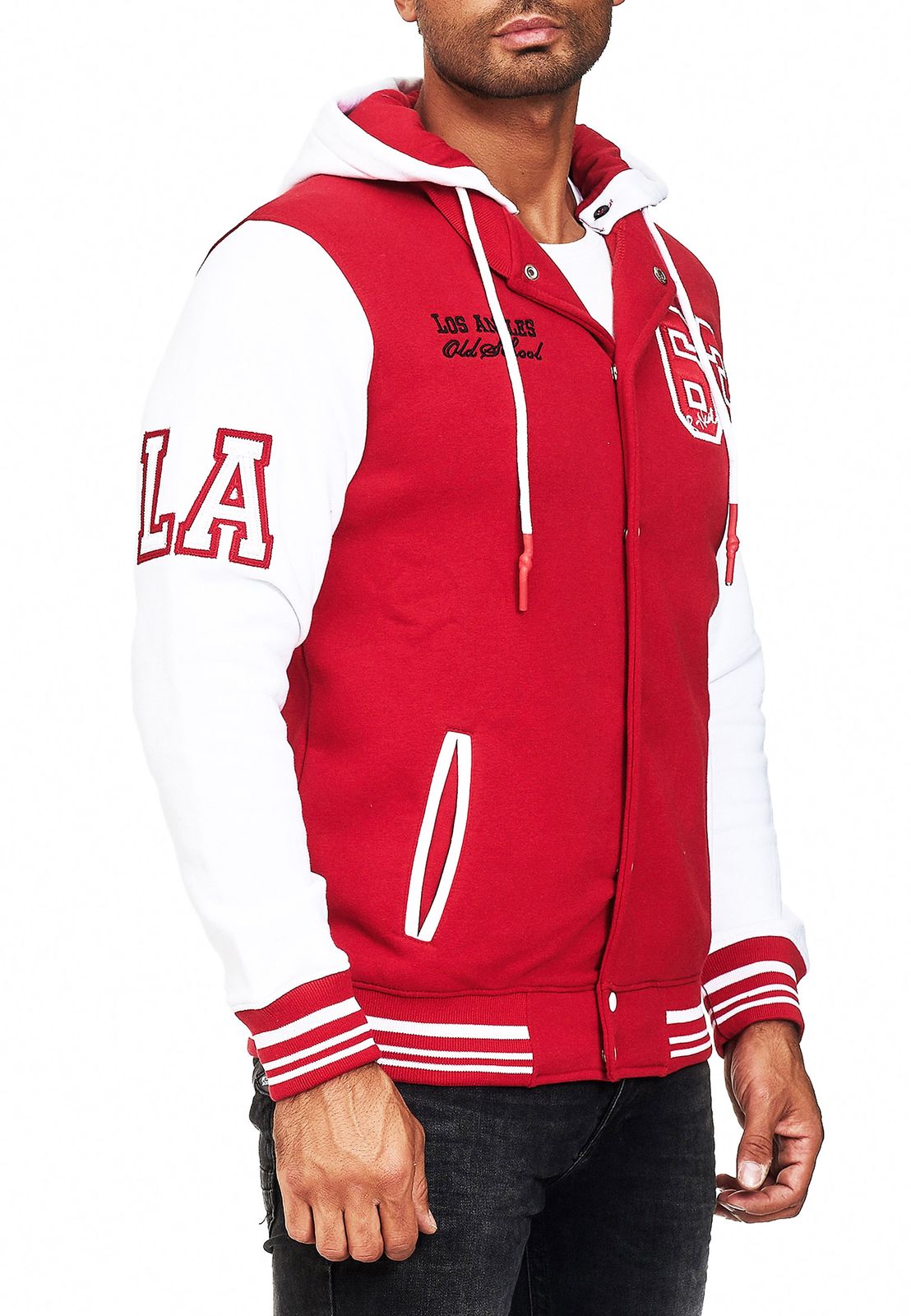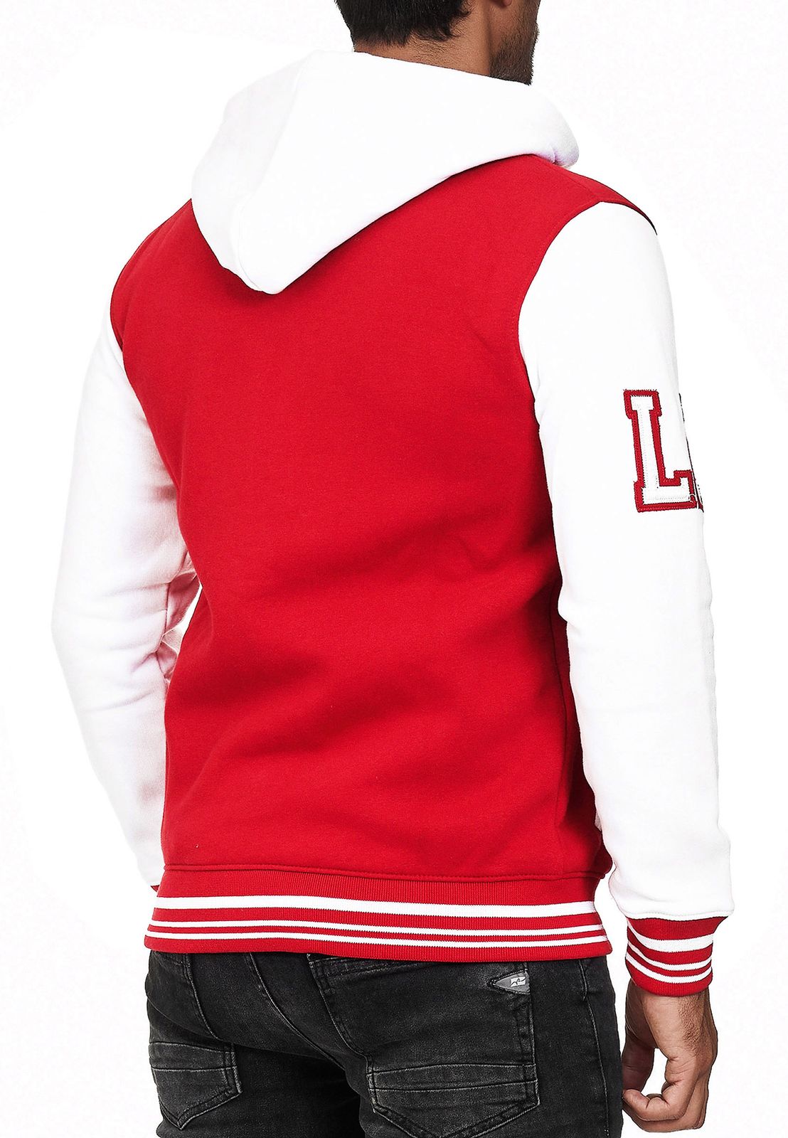 Felpa con cappuccio casual da uomo in stile college 6876 in rosso/bianco, blu/bianco o bianco/nero