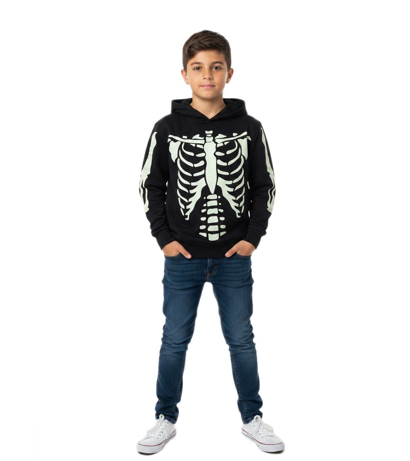 Felpa con cappuccio da bambino con stampa a ossa, accattivante e perfetta per i piccoli trendsetter 918185 Nera