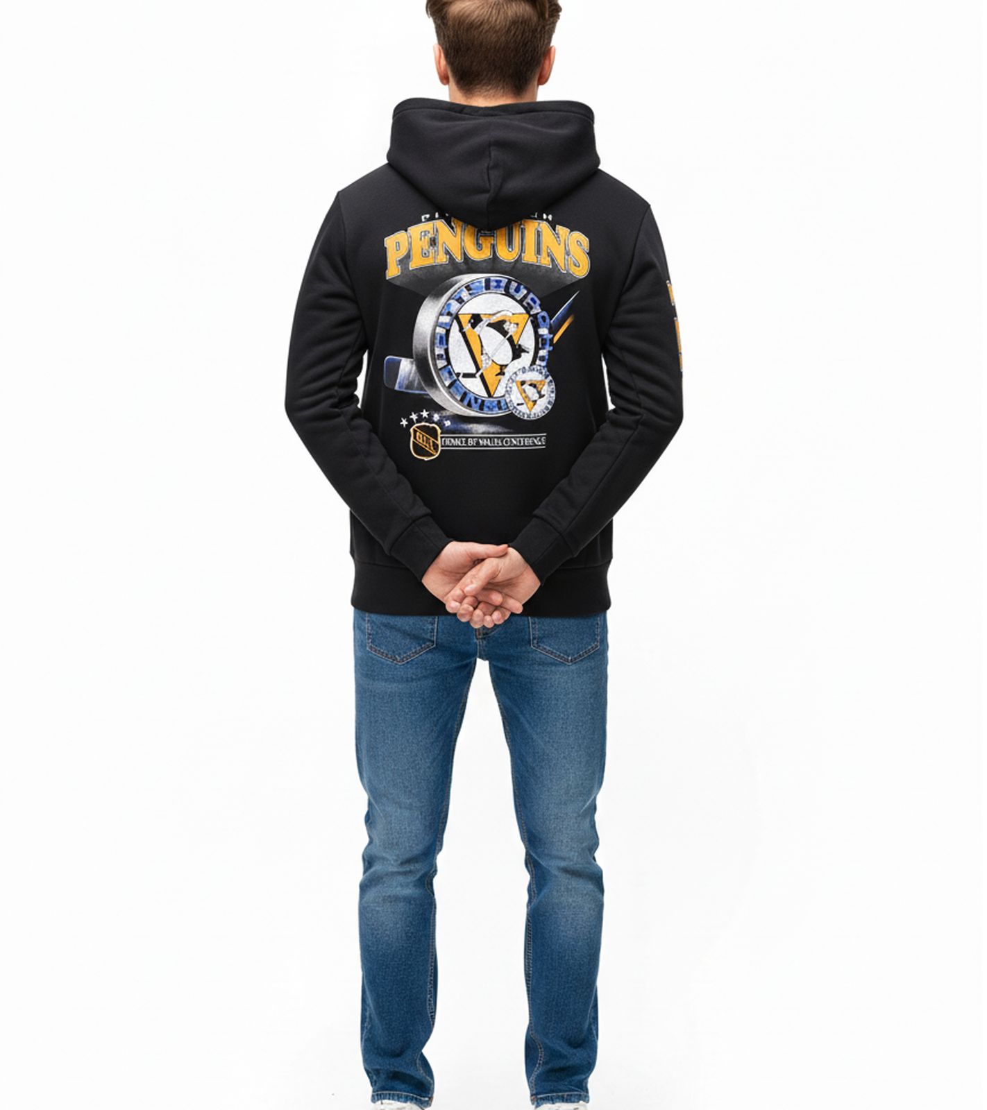 Felpa con cappuccio da uomo Hollister x NHL Pittsburgh Penguins con stampa del logo della squadra, pullover in cotone 322-221-1606-900, nero