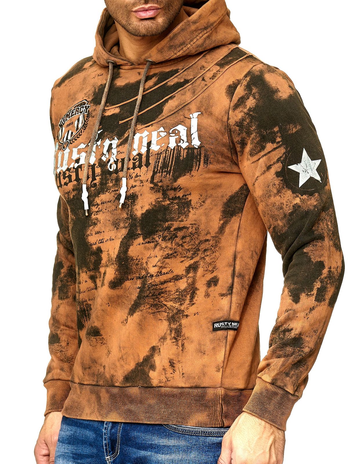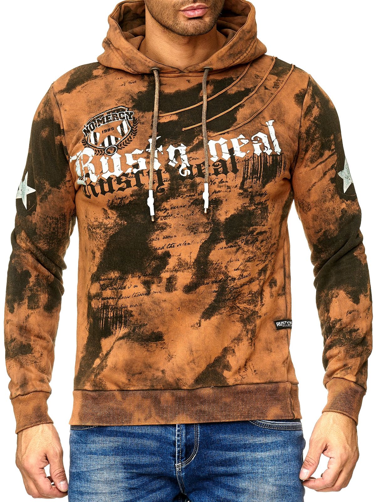 Felpa con cappuccio da uomo in stile batik con stampa vintage, maglione in stile usato 19112 Cammello