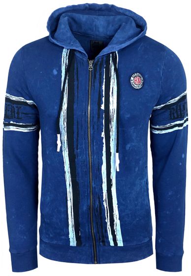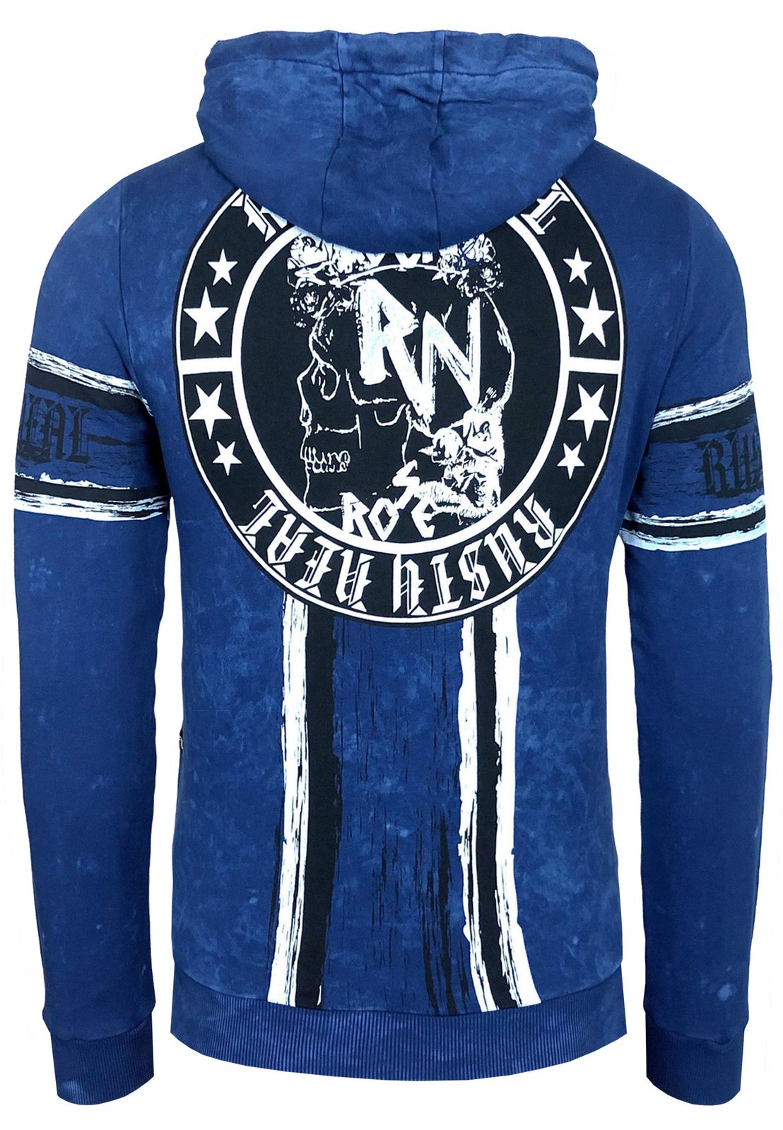 Felpa con cappuccio da uomo moderna, giacca in felpa sbiadita con stampa teschio, giacca con cappuccio 19122 Sax-Blue