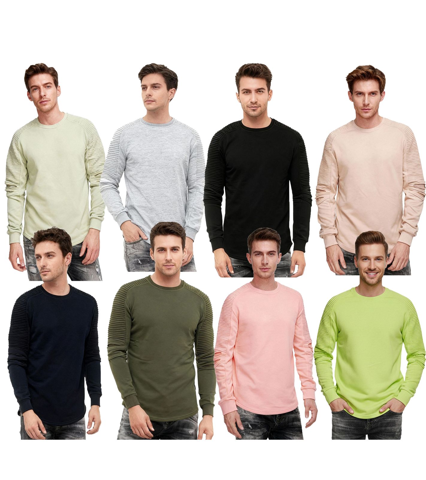 Felpa Urban da uomo con maniche a coste, pullover 19056 in grigio mélange, verde lime, rosa, marrone chiaro, verde chiaro, kaki, blu navy o nero