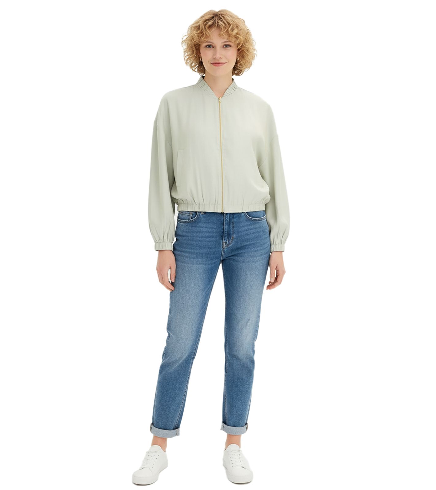 Giacca da donna lucida, bomber in raso, oversize, 913821, menta/oro