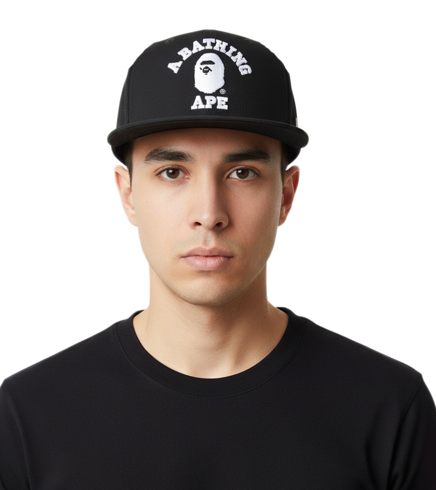 Gorra unisex A Bathing Ape College de New Era, estilo urbano urbano con cierre a presión, color negro.