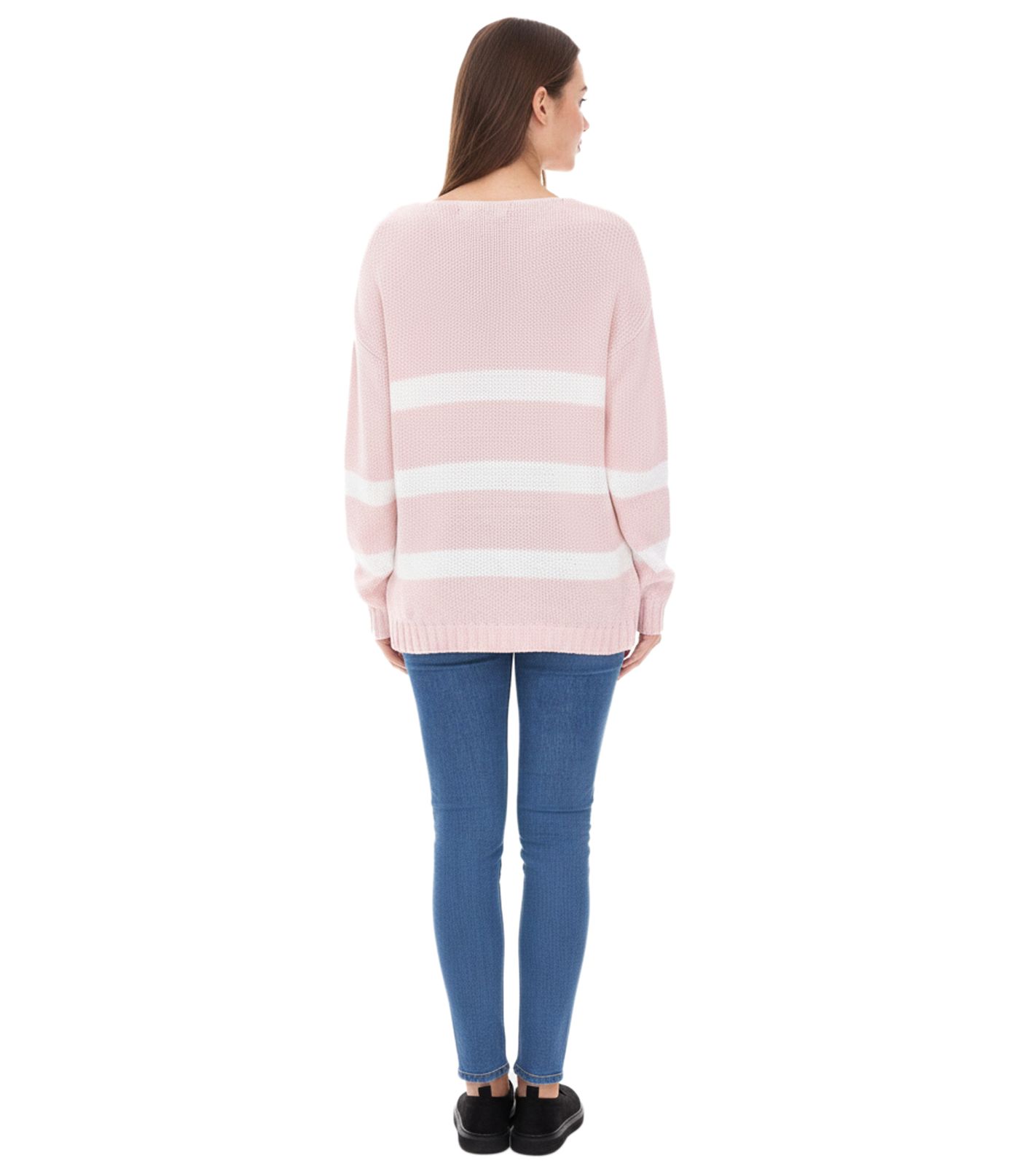 Maglione casual da donna Aniston in maglia con contenuto di cotone, per tutti i giorni, a maniche lunghe, 74491342, rosa/bianco
