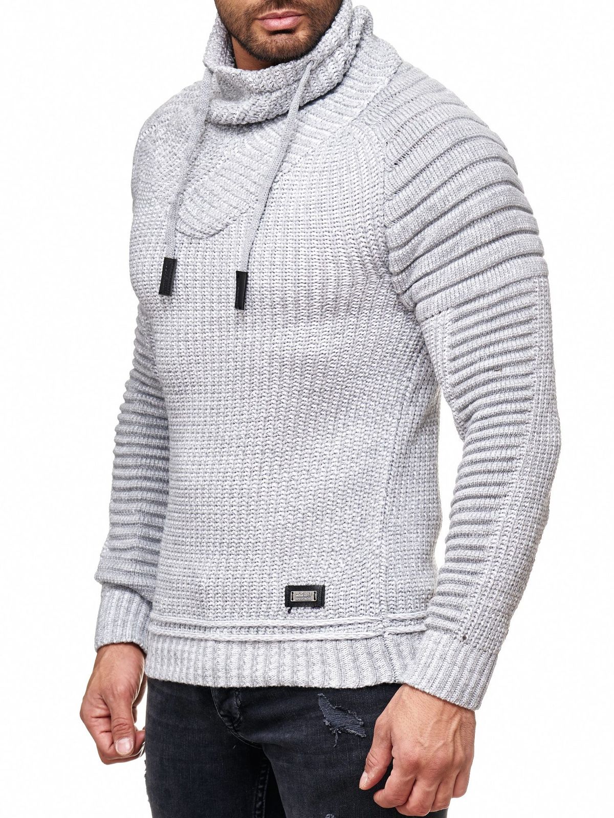 Maglione da motociclista urbano con collo alto, maglione in maglia grossa con collo alto 13293 Grigio