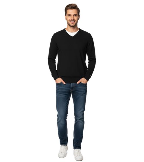 Maglione da uomo alla moda in maglia con toppe sui gomiti tono su tono, lana merino, 144-005, nero