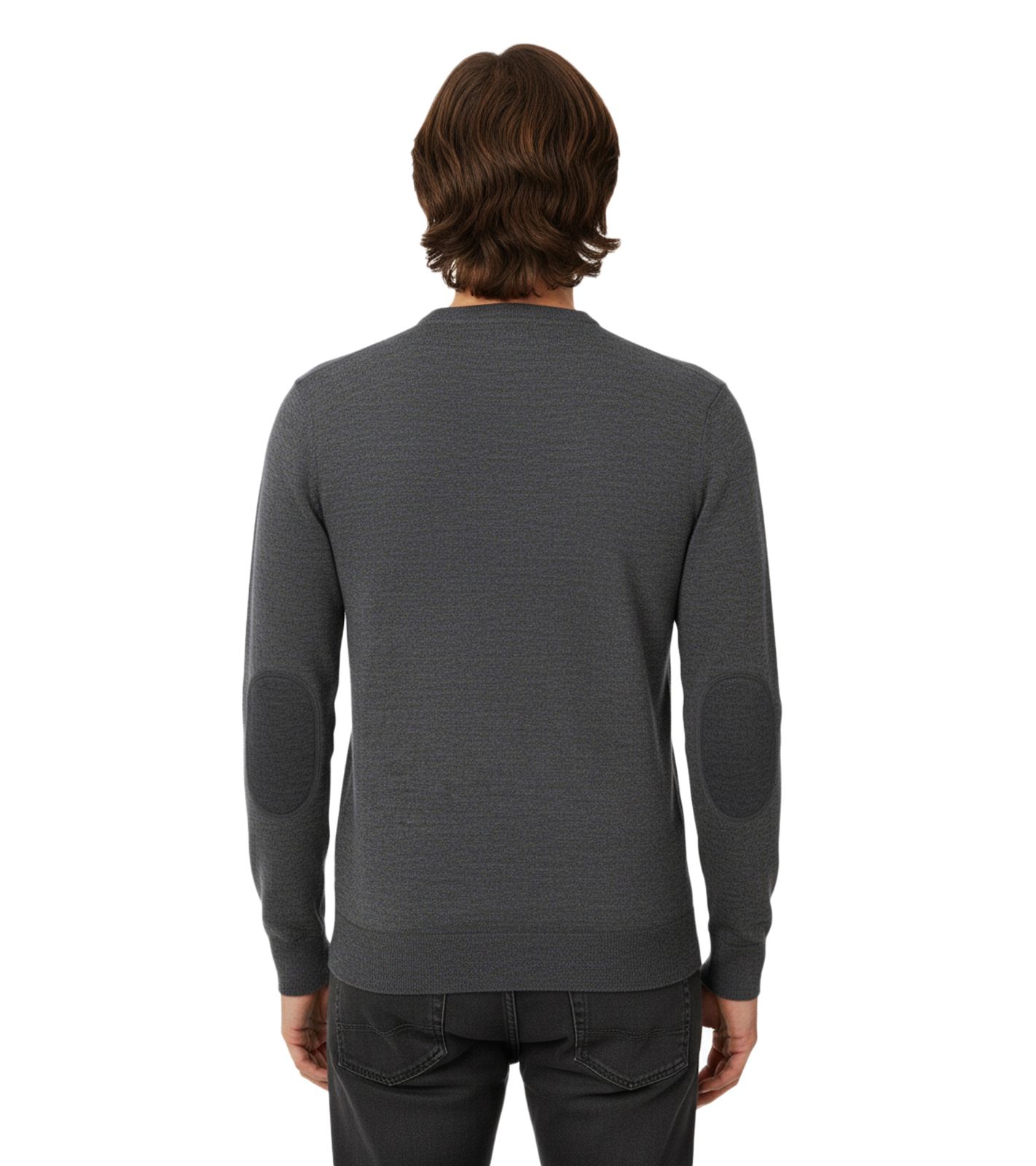 Maglione da uomo alla moda in maglia con toppe sui gomiti tono su tono, lana merino, taglie 144-328, grigio