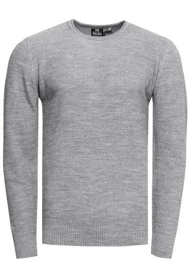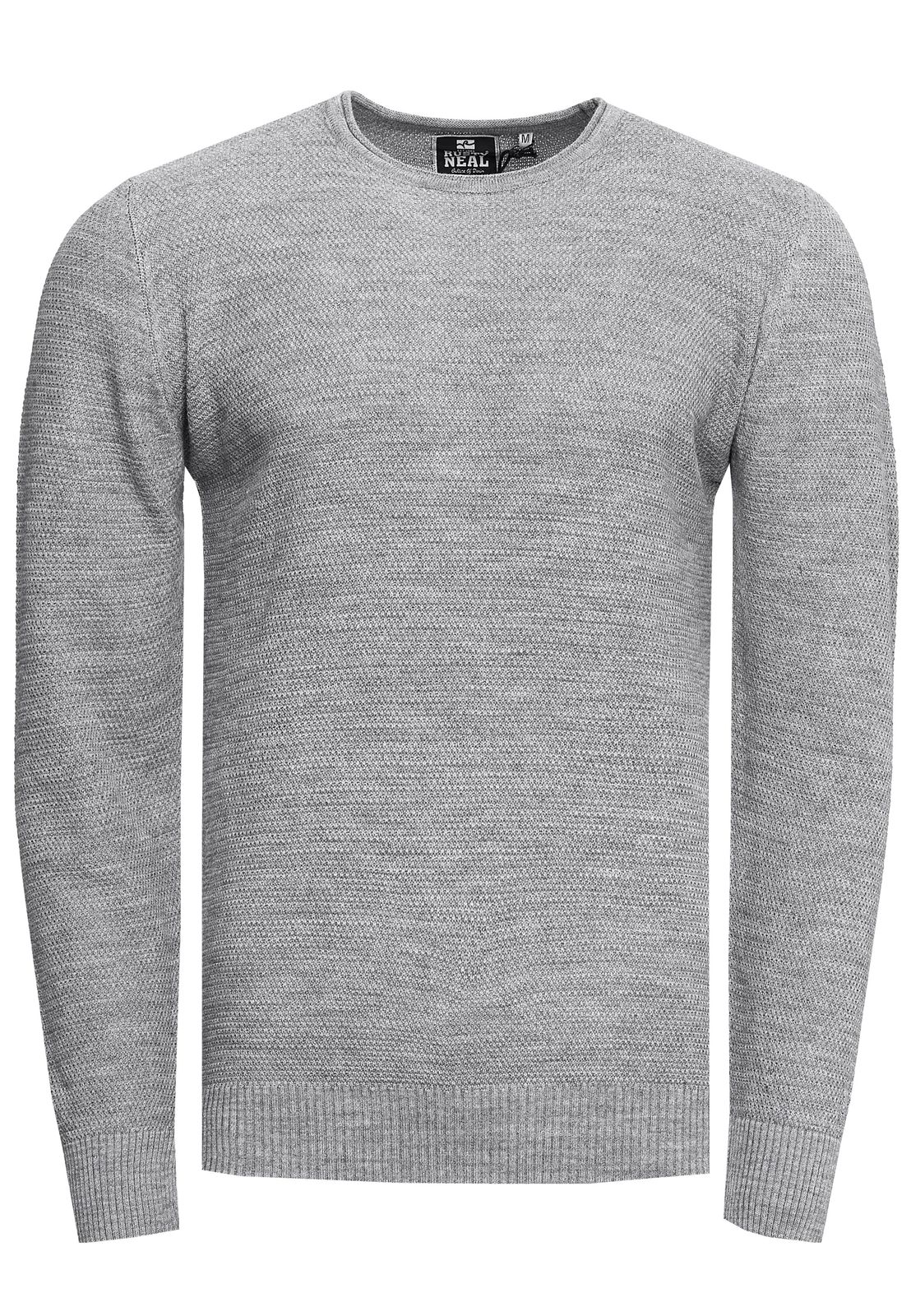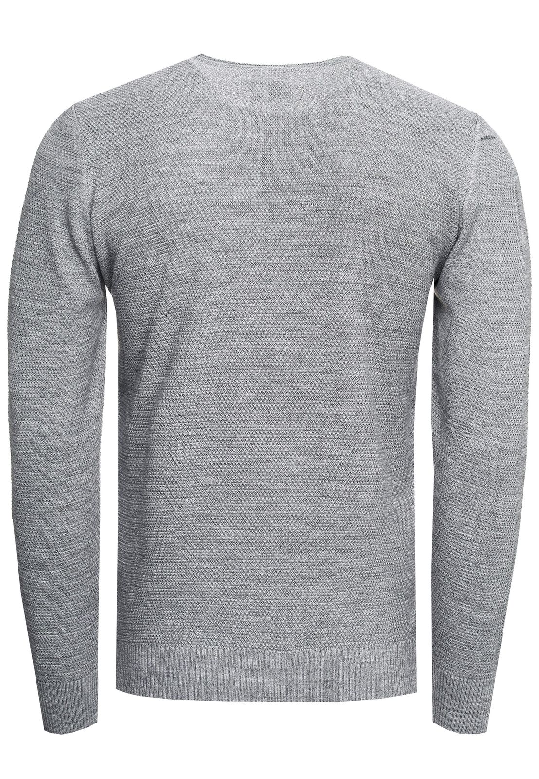 Maglione da uomo in maglia fine, basic e senza tempo, con scollo rotondo e lavorazione a trama, vestibilità slim, 13379 Grigio