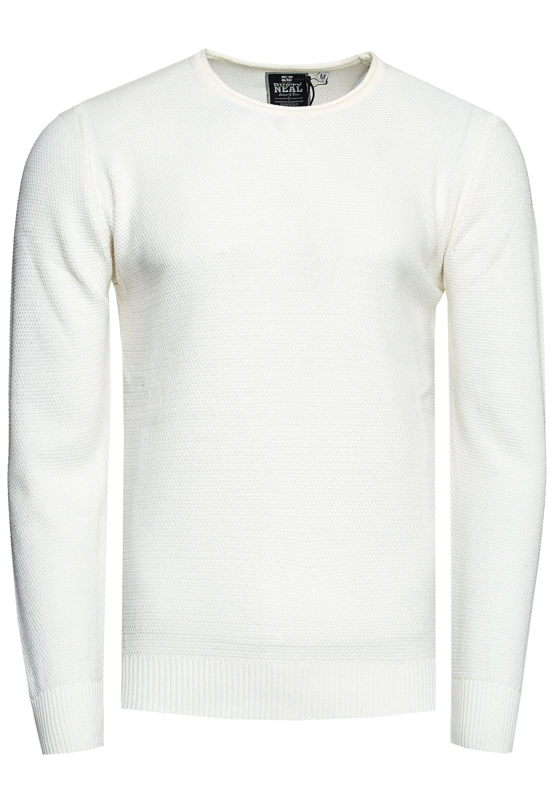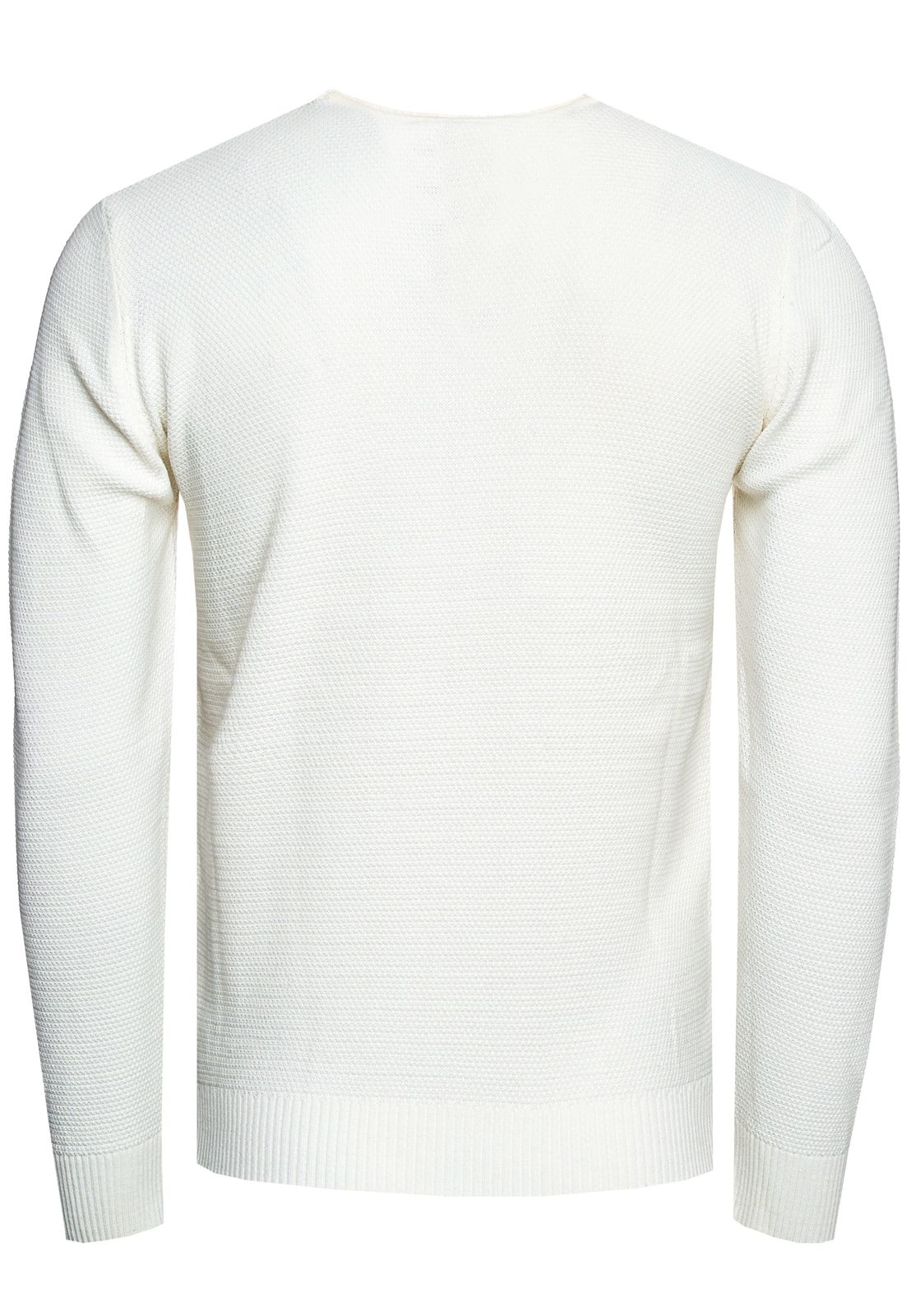 Maglione da uomo in maglia fine, basic e senza tempo, con scollo rotondo e trama, vestibilità slim, 13379 bianco