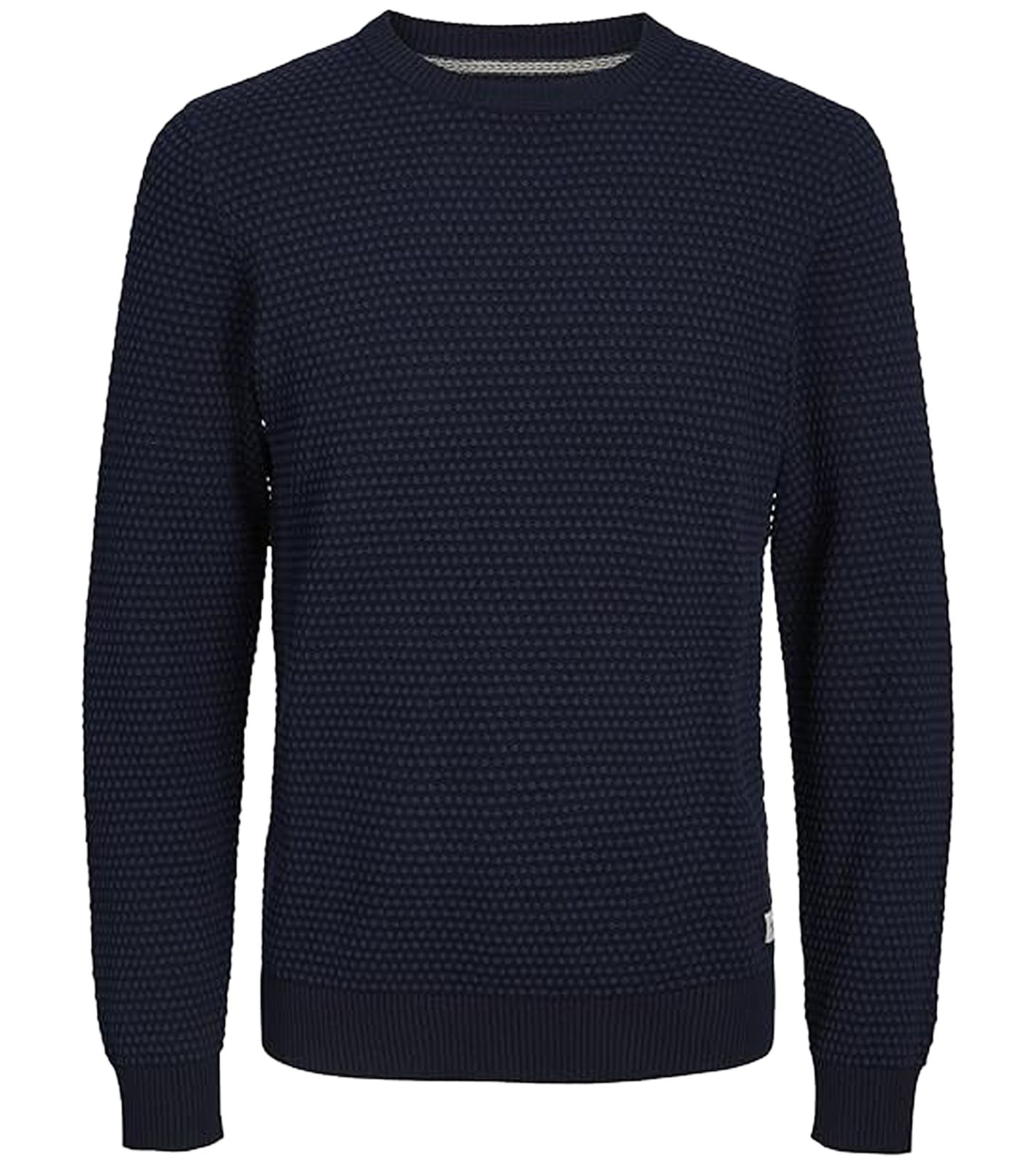 Maglione da uomo JACK & JONES JJEATLAS in maglia con design strutturato, in cotone, girocollo, 12212816, beige o blu scuro