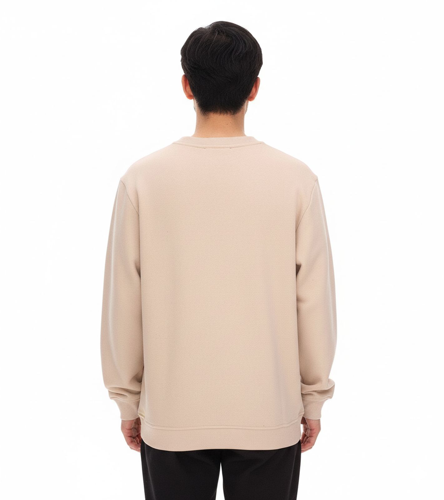 STONES Maglione oversize da uomo, moderna felpa girocollo in cotone con logo ricamato, beige