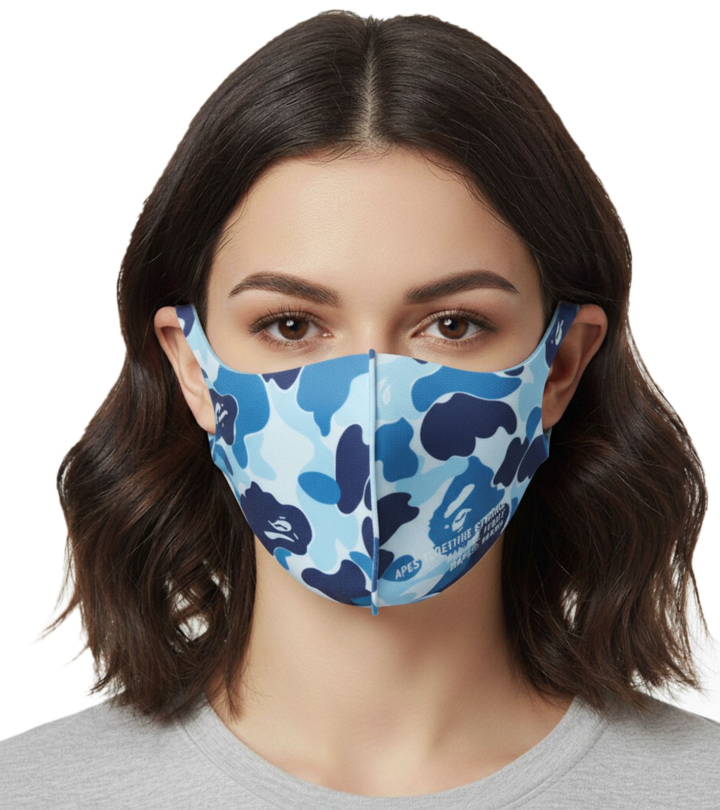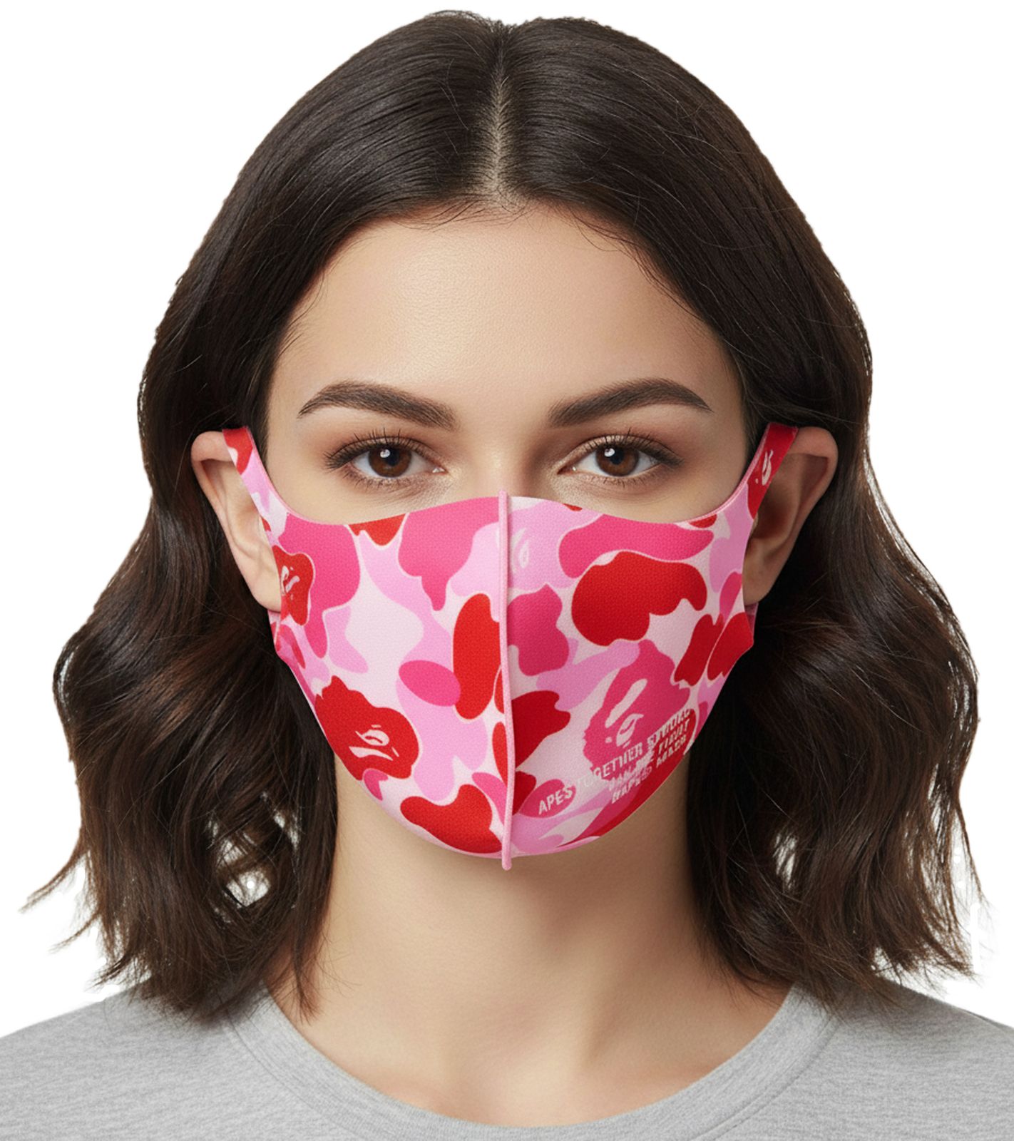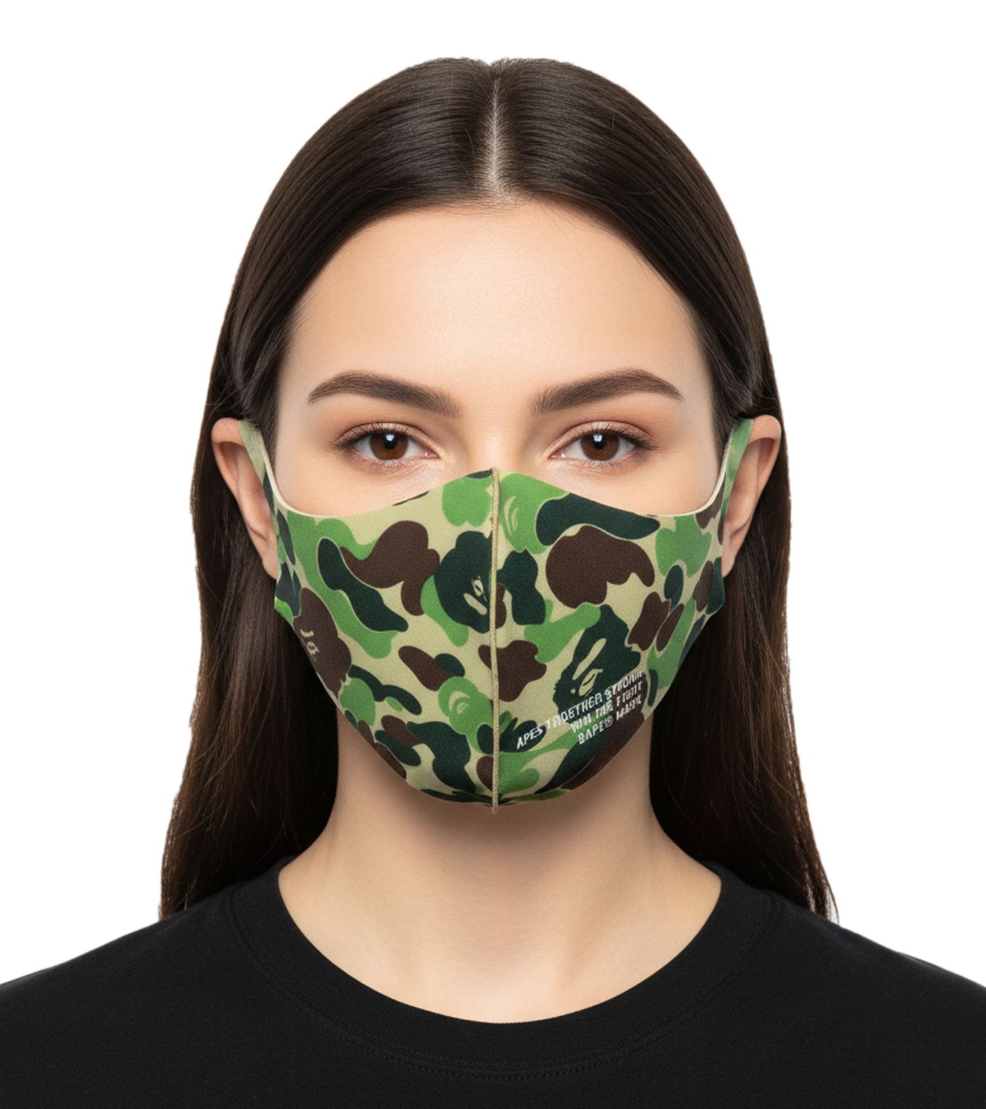 Mascherina streetwear A Bathing Ape ABC Camouflage, confezione da 3, design streetwear mimetico